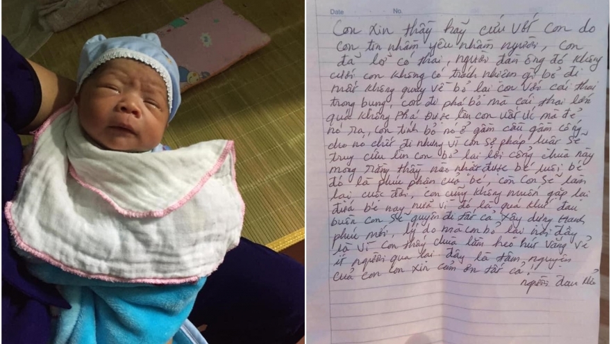 Mẹ bỏ con trai sơ sinh tại cổng chùa kèm lý do “yêu nhầm người“VOV.VN - Bé trai sơ sinh nặng 2,7kg bị mẹ bỏ rơi ở cổng chùa kèm lá thư nhờ nuôi hộ với lý do “con tin yêu nhầm người".