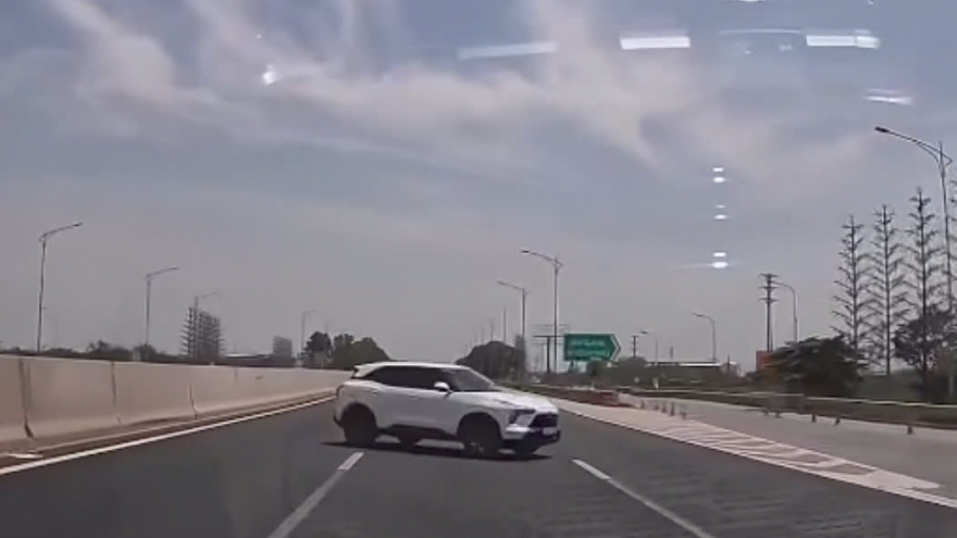 VOV.VN - Đội Cảnh sát giao thông đường bộ cao tốc số 2 (Cục Cảnh sát giao thông) lập biên bản xử phạt nữ tài xế lái xe đi ngược chiều trên cao tốc Hà Nội - Hải Phòng