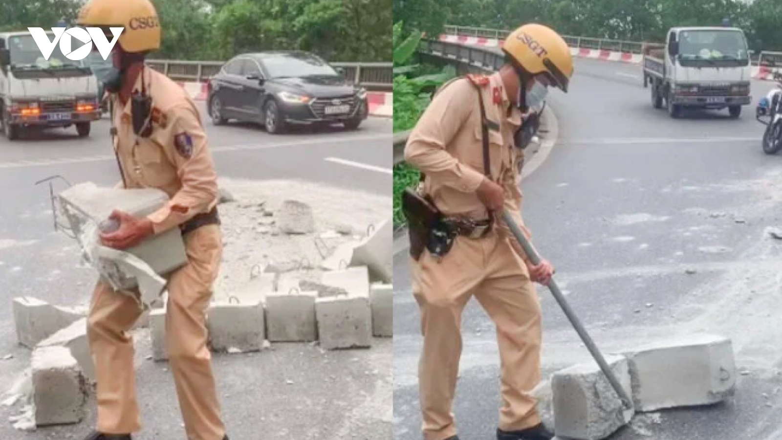 VOV.VN - Cơ quan chức năng truy tìm chiếc xe làm rơi hàng chục khối bê tông trên đường dẫn từ Quốc lộ 1B xuống Quốc lộ 5 (phường Thạch Bàn, quận Long Biên, Hà Nội).