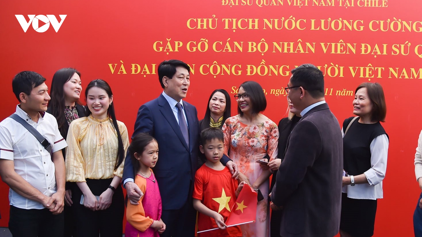 VOV.VN - Trong khuôn khổ chuyến thăm chính thức Cộng hoà Chile, tối 9/11 (theo giờ địa phương), tại thủ đô Santiago de Chile, Chủ tịch nước Lương Cường và Đoàn đại biểu cấp cao Việt Nam đã tới thăm, nói chuyện với cán bộ, nhân viên Đại sứ quán cùng đại diện cộng đồng người Việt Nam đang sinh sống, làm việc và học tập tại Chile.