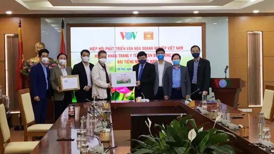 VOV.VN - Sáng 24/4, tại Hà Nội, Hiệp hội phát triển Văn hóa doanh nghiệp Việt Nam trao tặng 3.000 khẩu trang y tế cho cán bộ, viên chức, người lao động của VOV.