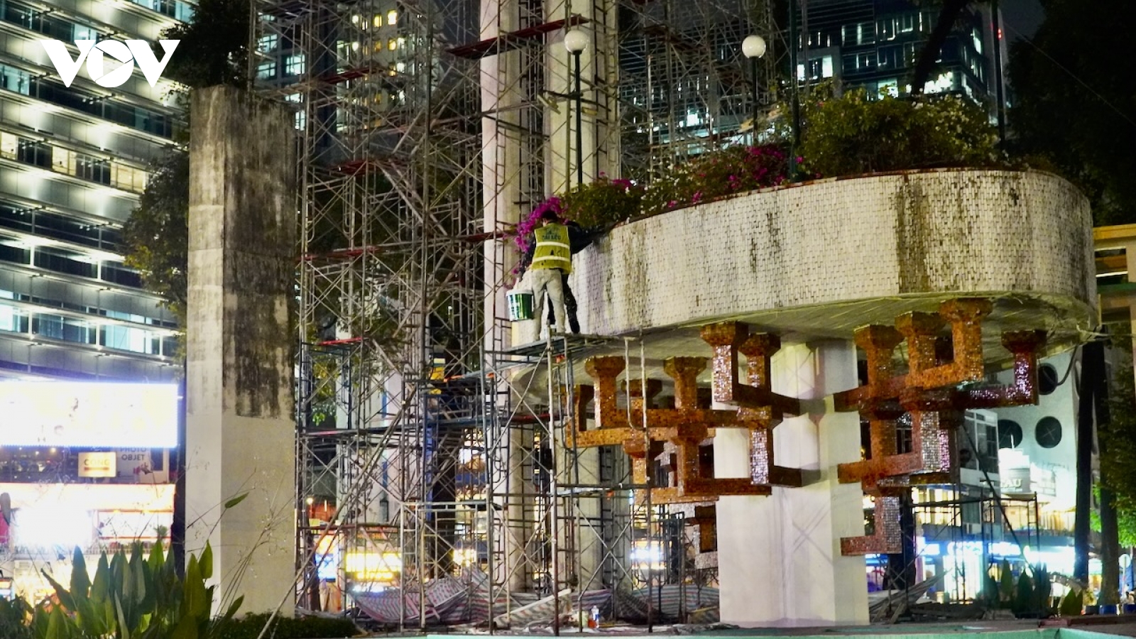 VOV.VN - Chạy đua với thời gian trước Tết Nguyên đán 2026, công trường chỉnh trang Hồ Con Rùa (phường Xuân Hòa) luôn trong tình trạng thi công gấp rút. Đáng lo ngại, hình ảnh trong đêm nhiều công nhân không được trang bị bảo hộ lao động đu dây để chỉnh trang công trình.