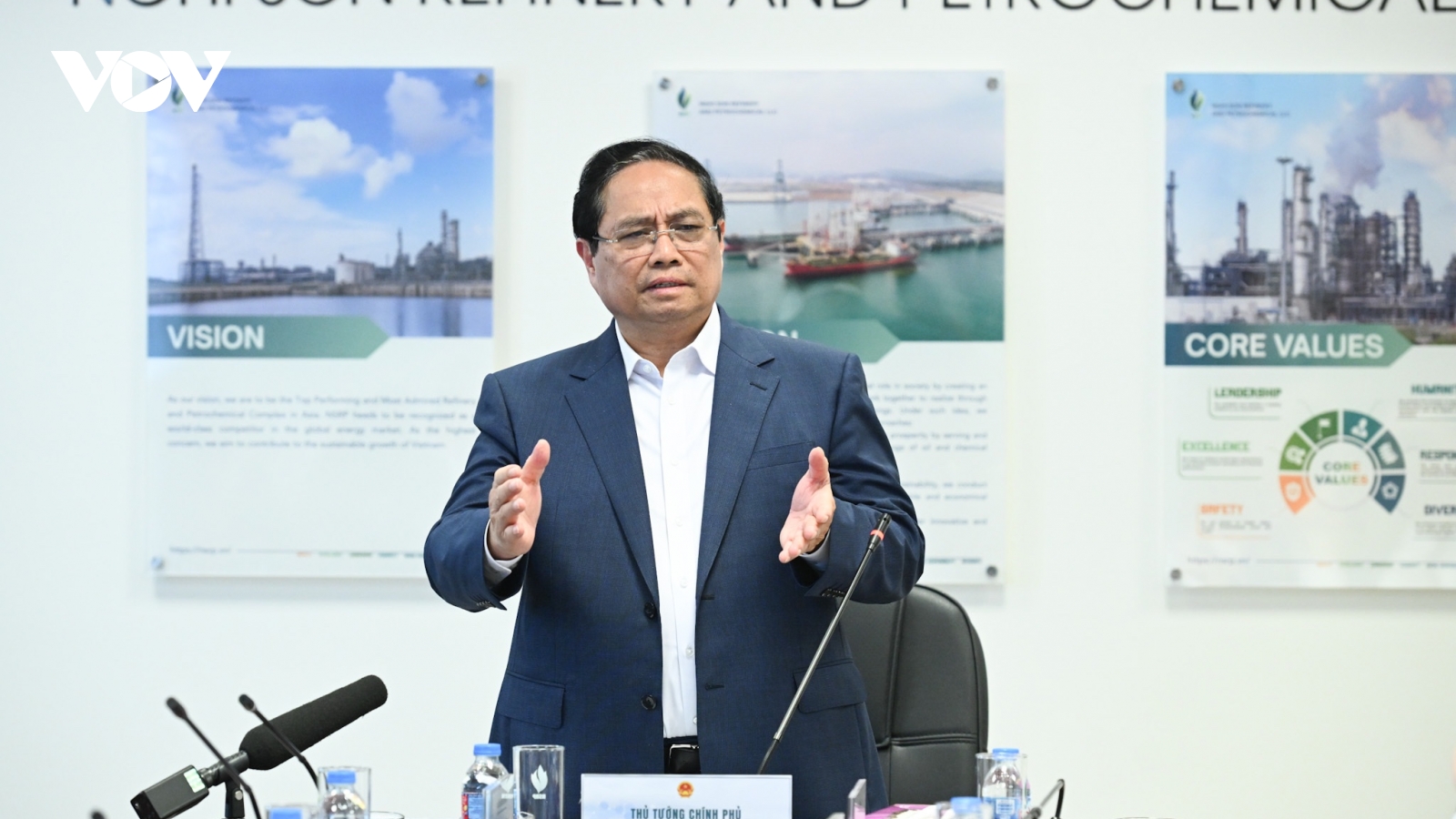 VOV.VN - Trưa nay (29/3), Thủ tướng Phạm Minh Chính làm việc với Công ty THHH Lọc hoá dầu Nghi Sơn và thị sát nơi xây dựng kho dự trữ chiến lược xăng dầu tại Nghi Sơn. Thủ tướng cho rằng việc xây dựng kho dự trữ chiến lược xăng dầu tại Nghi Sơn phải được thực hiện trên tinh thần khẩn cấp.
