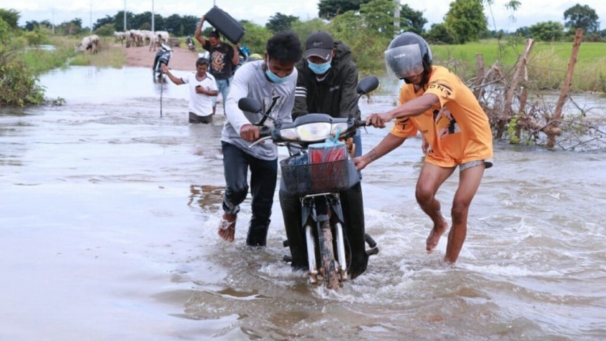 VOV.VN - Theo Ủy ban quốc gia về quản lý thiên tai (NCDM) Campuchia, tính đến ngày 26/9, do lượng mưa lớn nên đã gây ngập lụt tại 5 tỉnh của Campuchia. Hiện nay, lực lượng chức năng đang sơ tán các nạn nhân tới nơi trú ẩn an toàn.