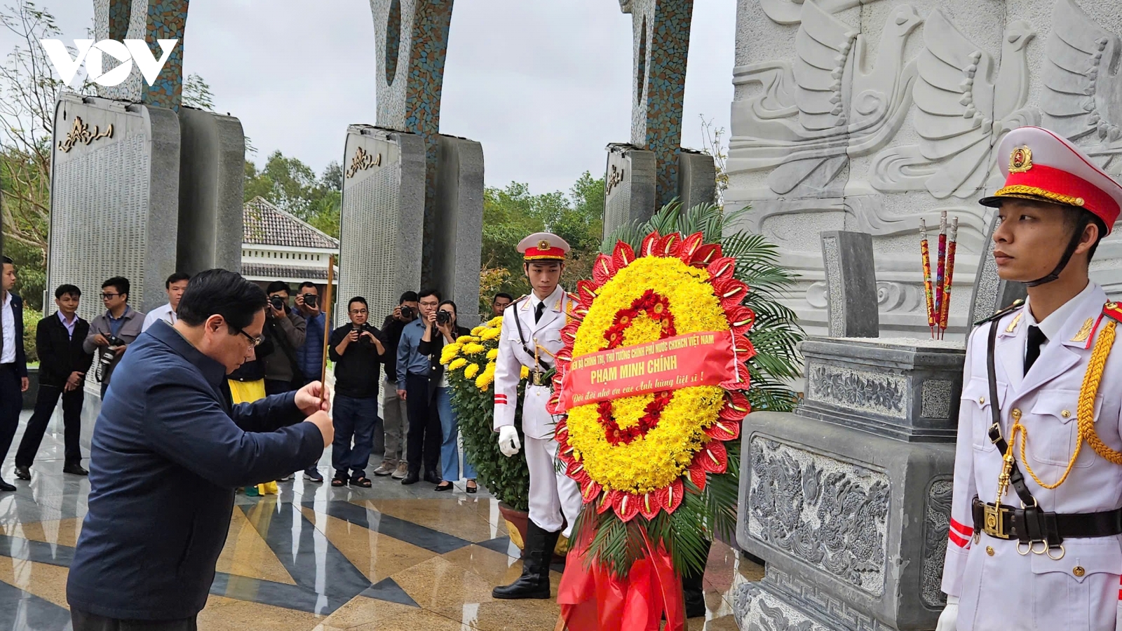 VOV.VN - Sáng 9/2, trong chuyến công tác tại tỉnh Quảng Ngãi, Thủ tướng Phạm Minh Chính cùng đoàn công tác của Chính phủ, lãnh đạo tỉnh Quảng Ngãi đến thăm Khu lưu niệm và thành kính dâng hoa, dâng hương tưởng nhớ công lao to lớn của cố Thủ tướng Phạm Văn Đồng.