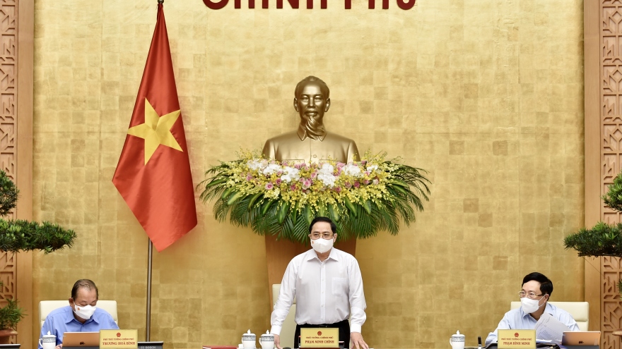 VOV.VN - Ngày 5/5, tại Trụ sở Chính phủ, Thủ tướng Chính phủ Phạm Minh Chính chủ trì phiên họp Chính phủ thường kỳ tháng 4/2021. Công tác phòng, chống dịch COVID-19 là nội dung đầu tiên được Chính phủ ưu tiên xem xét tại phiên họp.