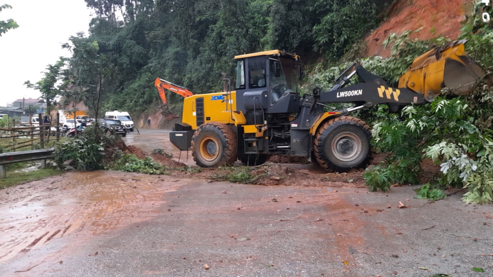 VOV.VN - Do ảnh hưởng của mưa lớn kéo dài, vào khoảng 9h30 ngày 21/8, tại Km183+170 Quốc lộ 12, đoạn thuộc địa phận đèo Cò Chạy, xã Hua Thanh, huyện Điện Biên, tỉnh Điện Biên xảy ra sạt lở đất đá từ ta luy dương vùi lấp hoàn toàn mặt đường.
