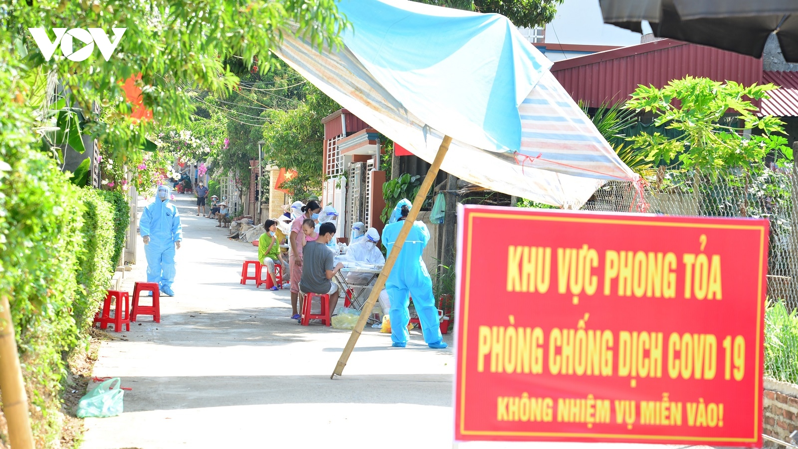 VOV.VN - Sáng 17/5, thành phố Điện Biên Phủ, tỉnh Điện Biên lấy hơn 200 mẫu bệnh phẩm của người dân khu vực tổ dân phố 5, phường Him Lam và các tiểu thương khu vực chợ lân cận để xét nghiệm Covid-19.