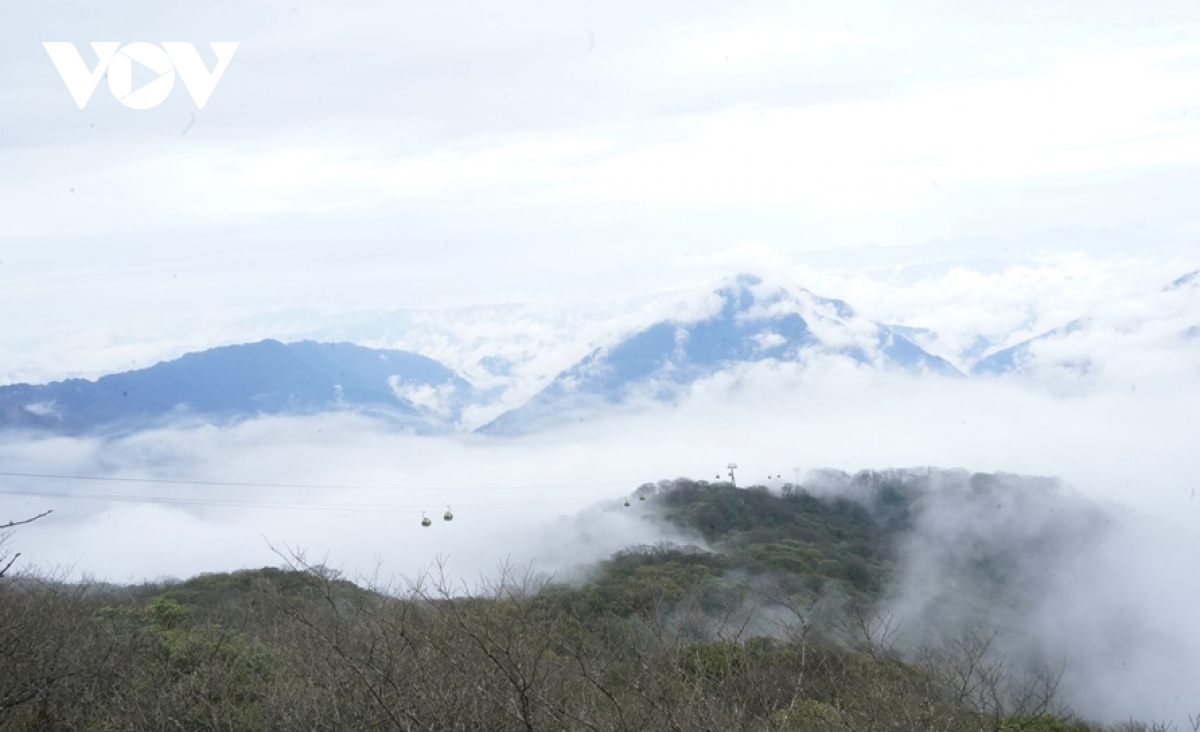 Mưa giăng và mây mù khiến ngọn núi trở nên huyền ảo, những cabin cáp treo lên núi như đi xuyên giữa biển mây. Dù ngồi cáp, du khách vẫn phải leo thêm khoảng 2000 bậc thang, nhưng nếu tự trèo số bậc sẽ là tầm 8000. Tuy nhiên, ở đây luôn có dịch vụ kiệu, với giá trung bình từ 200-500 Nhân dân tệ (khoảng 800.000-2 triệu đồng) tùy độ cao.