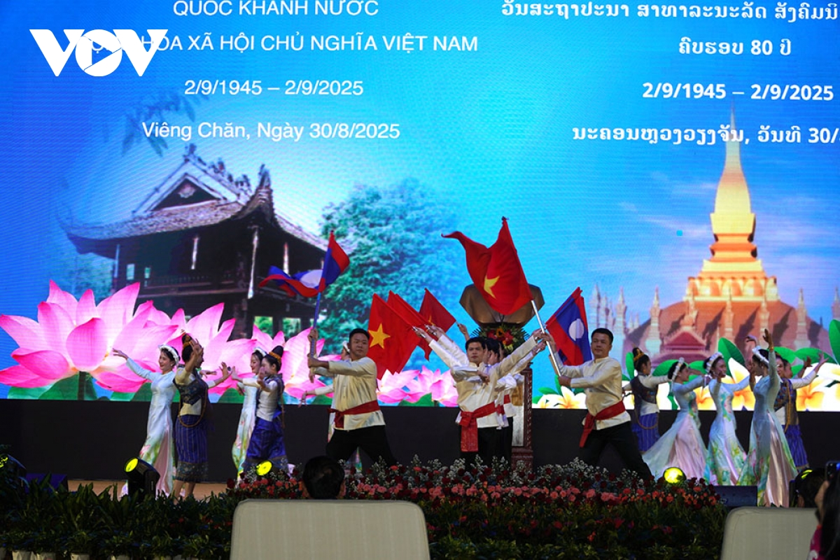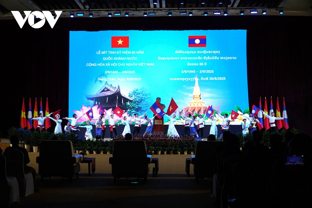 VOV.VN - Sáng nay (30/8), tại Trung tâm Hội nghị quốc gia ở thủ đô Vientiane, Đảng, Nhà nước Lào tổ chức Lễ mít tinh trọng thể nhân dịp kỷ niệm 80 năm Quốc khánh Việt Nam.
