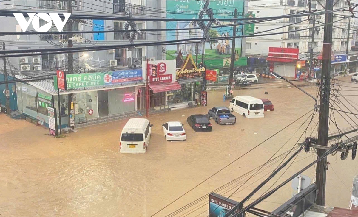 Tại Phuket (miền Nam Thái Lan), mưa lớn kết hợp thủy triều cao khiến nhiều khu vực ngập sâu vào sáng 22/8, ảnh hưởng đến giao thông và hoạt động kinh doanh tại các điểm du lịch nổi tiếng. Trong những ngày tới, giới chức địa phương cảnh báo mưa kéo dài sẽ tiếp tục gây ngập úng. Phuket hiện đang trong diện cảnh báo vàng, với lượng mưa dự báo lên tới 90 mm trong vòng 24 giờ.