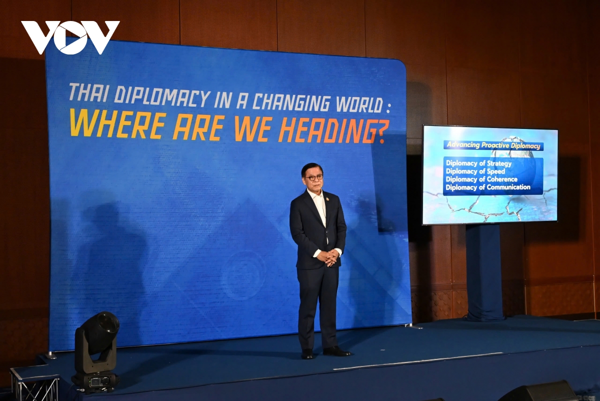 "Một điều rất quan trọng với Thái Lan là an ninh khu vực. Làm thế nào để ứng phó trước sự cạnh tranh địa chính trị giữa các cường quốc? Quan điểm của Thái Lan là kiên định giữ vững bản sắc, duy trì sự tự do linh hoạt và quyền tự chủ chiến lược. Thái Lan khẳng định không chọn bên và mong muốn xây dựng quan hệ hữu nghị với tất cả các đối tác. Thay vì chỉ xoay xở giữa các cực sẵn có, chúng tôi khuyến khích sự tham gia đa dạng của các đối tác khác vào khu vực, hướng tới một trật tự khu vực đa cực, cân bằng và ổn định", Ngoại trưởng Thái Lan cho biết.