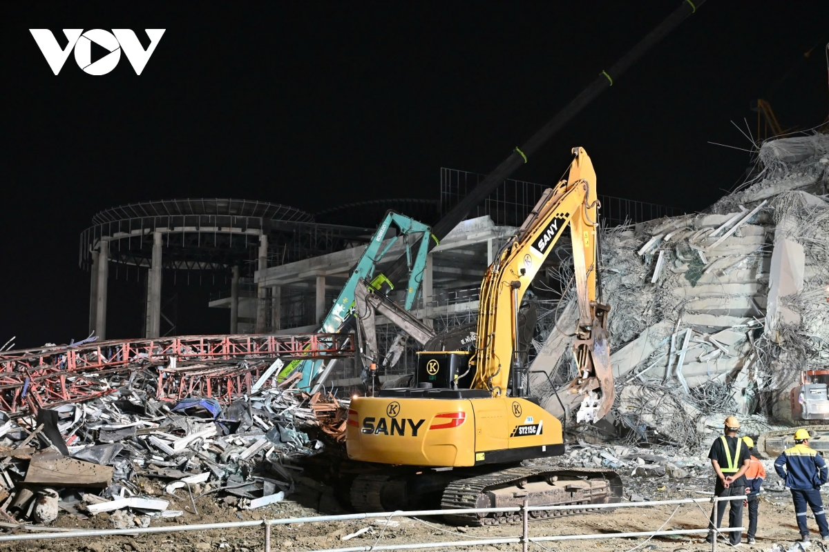 Máy móc hạng nặng hiện đang được sử dụng để khoan qua đống đổ nát, sau đó chó nghiệp vụ được triển khai để xác nhận dấu hiệu những người sống sót trước khi bắt đầu các hoạt động tìm kiếm cứu nạn tiếp theo.