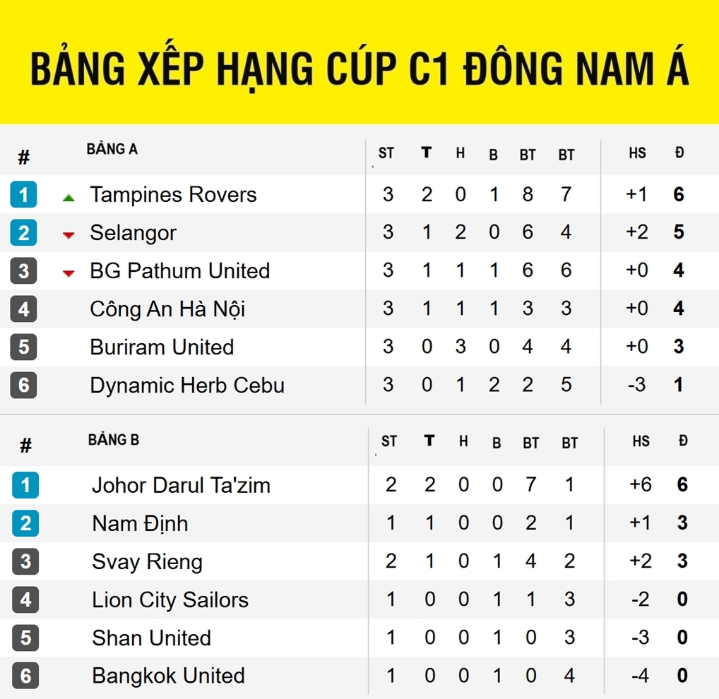 Bảng xếp hạng Cúp C1 Đông Nam Á mới nhất, cập nhật sáng 4/12: CLB CAHN gặp khó khăn lớn trong cuộc đua giành vé vào bán kết khi vừa có trận hòa 1-1 với Buriram United. Thầy trò HLV Polking hiện chỉ xếp thứ tư bảng A trong khi hai đội nhất, nhì mỗi bảng mới có vé vào vòng bán kết.