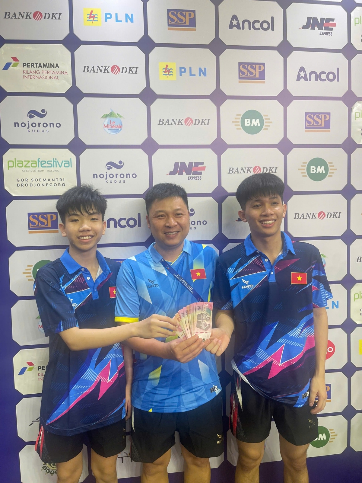 Tấm huy chương vàng đến ở nội dung U15 đôi nam do cặp đôi Nguyễn Đức Việt và Nguyễn Văn Tuấn Anh giành được sau chiến thắng thuyết phục 3-1 trước hai tay vợt trẻ của Malaysia trong trận chung kết. Trước đó, bộ đôi của đội tuyển trẻ Việt Nam đã gây ấn tượng mạnh khi đánh bại đôi tay vợt Thái Lan với chiến thắng thuyết phục 3 - 0 trong trận bán kết.