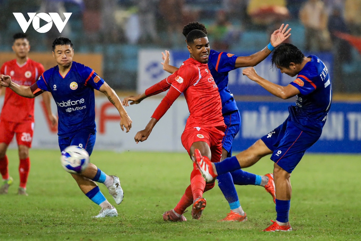 Nỗ lực không ngừng của đội chủ nhà được đền đáp ở phút 75 khi VAR xác định cầu thủ PVF CAND phạm lỗi với Quang Vinh. Alan thực hiện thành công quả 11m, mở tỷ số 1-0 và có bàn thứ 8 tại V-League mùa này.