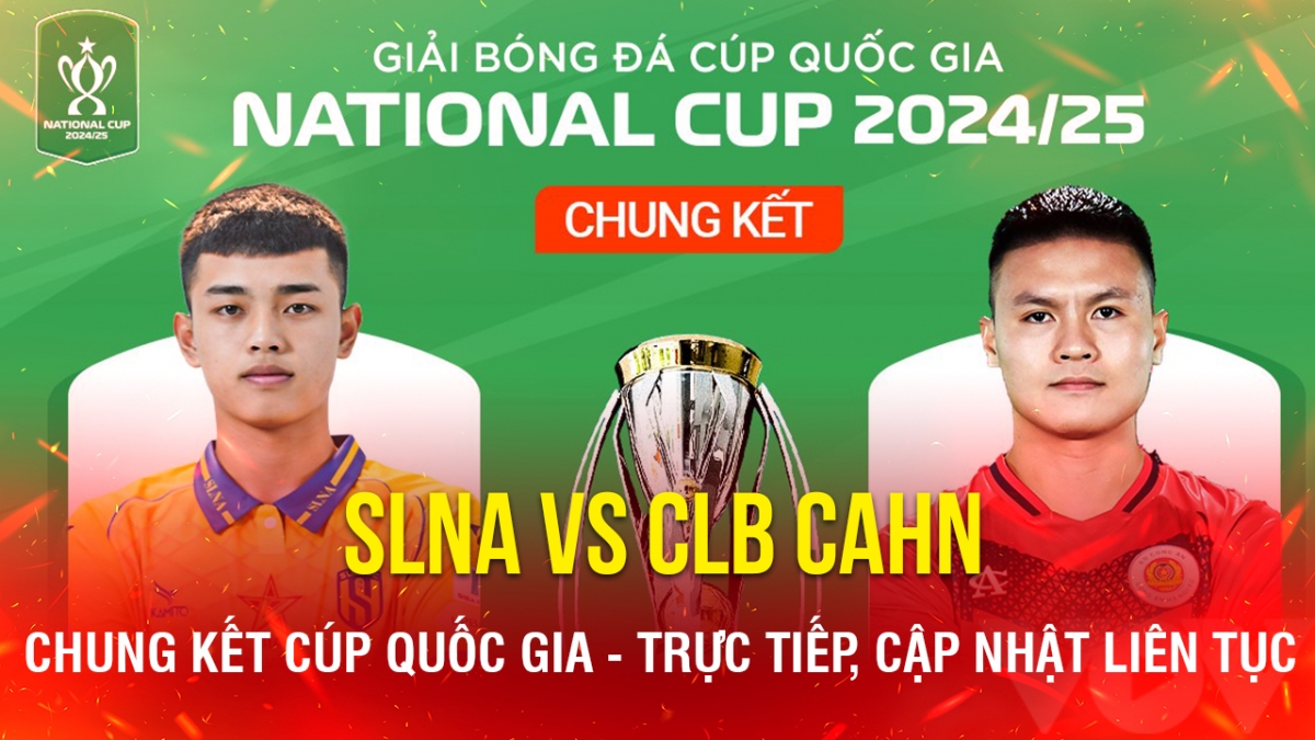 Xin chào các độc giả của VOV.VN, hôm nay chúng ta sẽ đến với buổi tường thuật trực tiếp trận đấu SLNA vs CLB CAHN, chung kết Cúp Quốc gia 2024/2025 bắt đầu lúc 18h ngày 29/6.