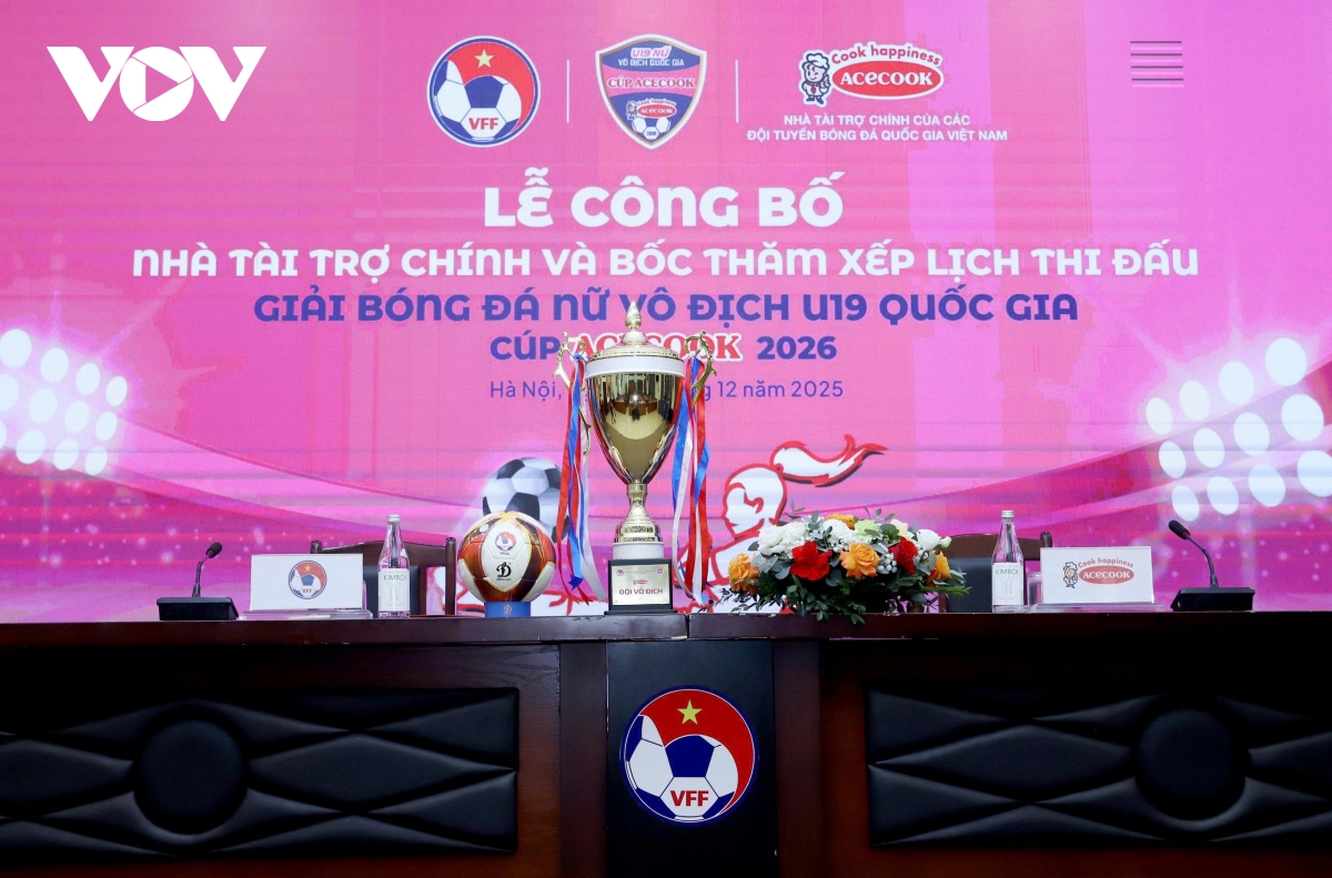 VOV.VN - Chiều 23/12, lễ công bố nhà tài trợ chính và bốc thăm xếp lịch thi đấu giải bóng đá U19 nữ quốc gia – Cúp ACECOOK 2026 đã diễn ra tại trụ sở VFF. Đây là giải đấu mang tính chất quan trọng trong việc tìm kiếm lực lượng cho U20 nữ Việt Nam tham dự giải châu Á, vòng loại U20 World Cup nữ 2026.
