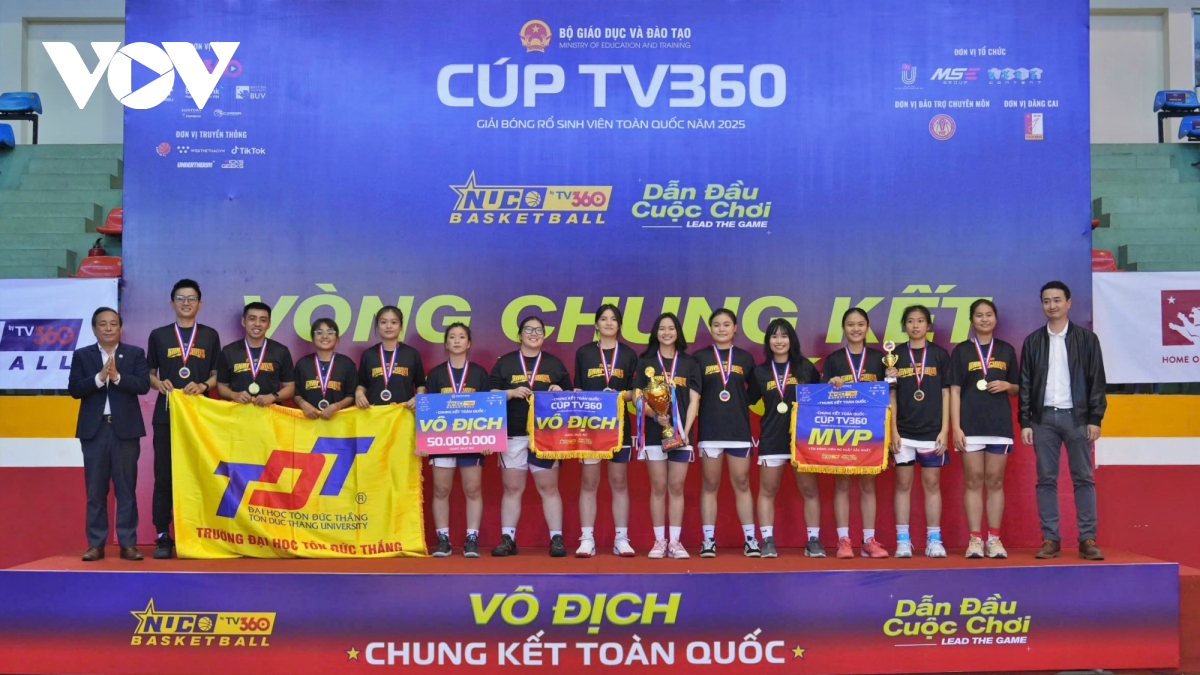 VOV.VN - Đại học Đà Nẵng (nội dung nam) và Đại học Tôn Đức Thắng (nội dung nữ) lên ngôi vô địch tại Giải bóng rổ sinh viên toàn quốc 2025 - Cúp TV360.