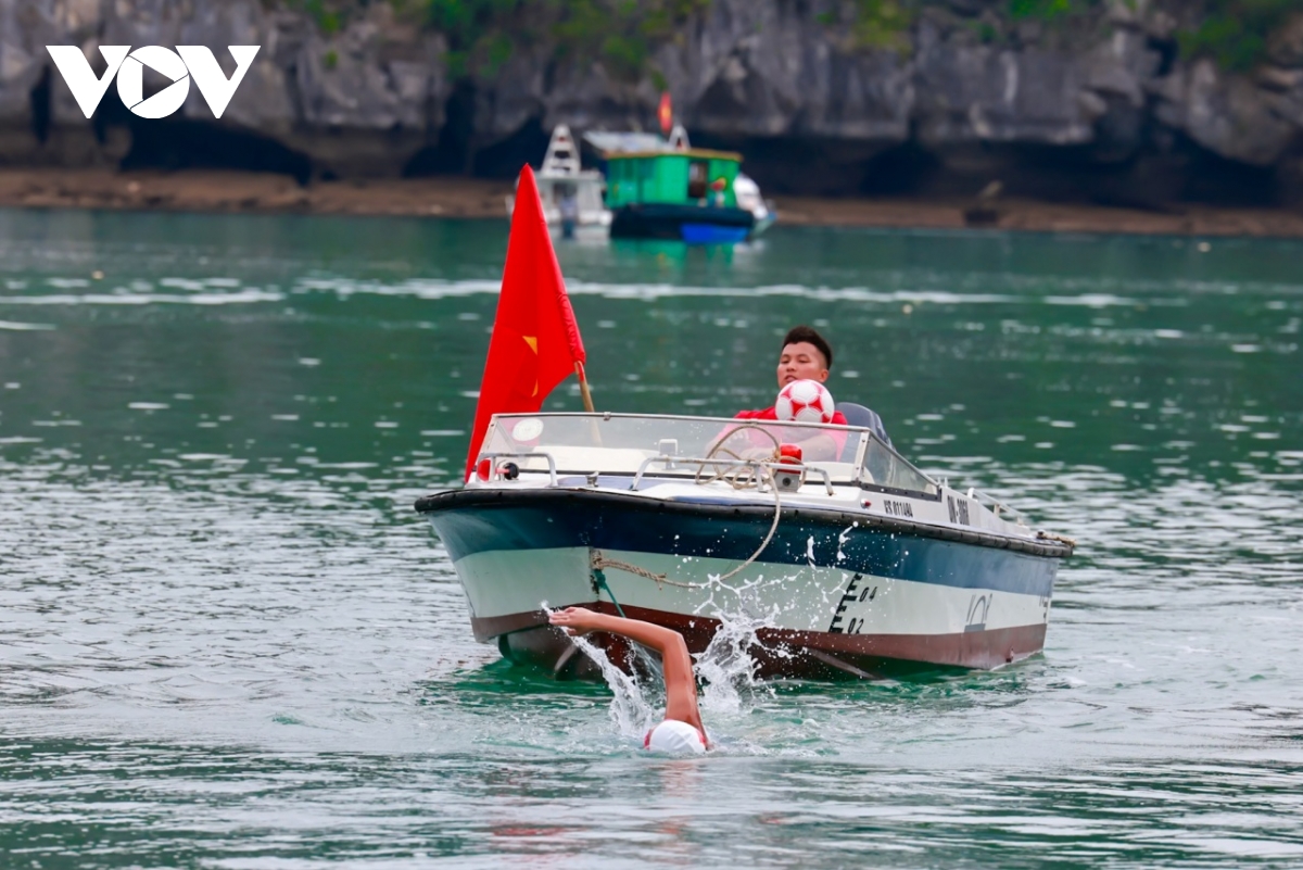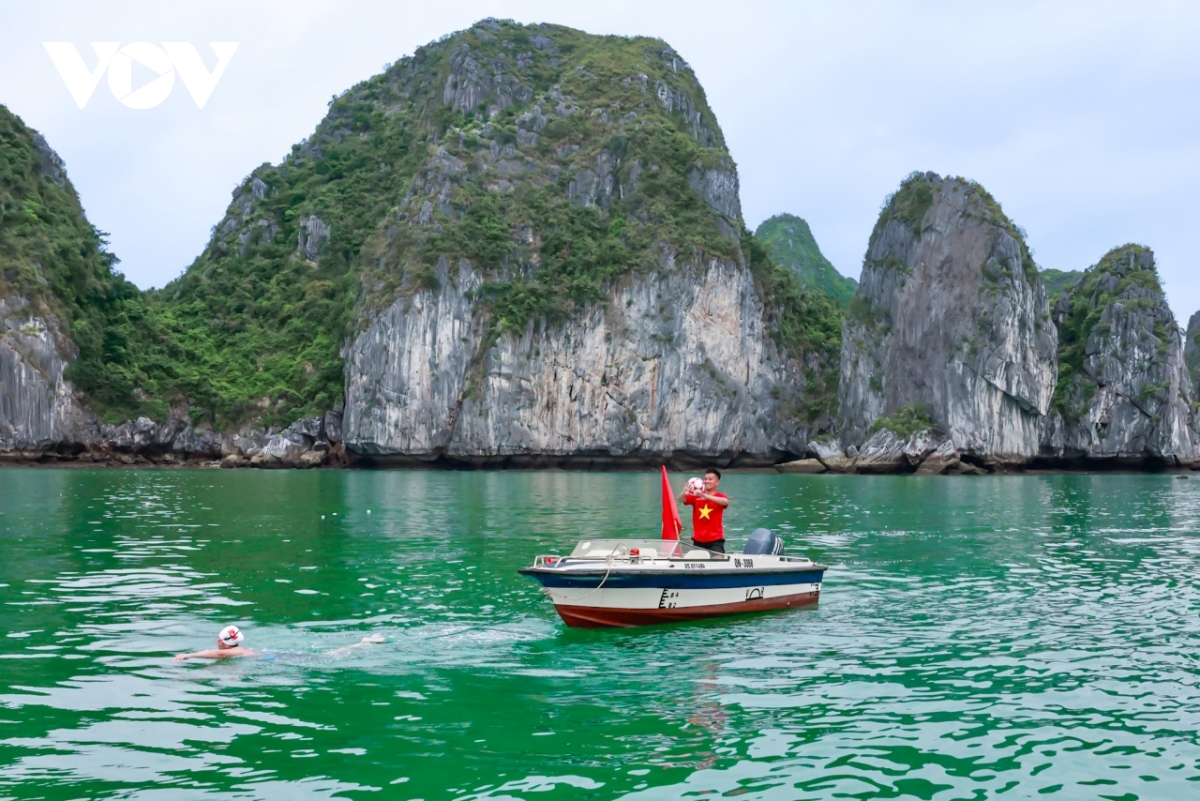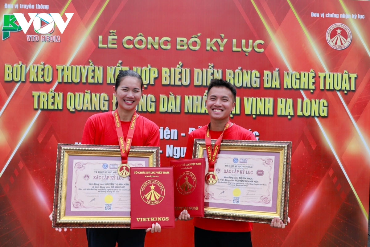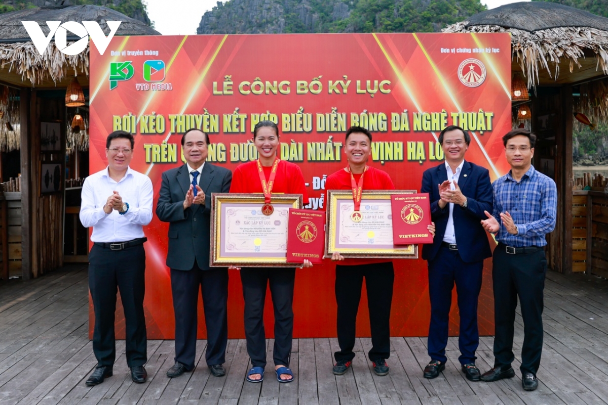 VOV.VN - Một kỷ lục đặc biệt vừa được thiết lập tại Bãi Cọc Chèo – Vịnh Hạ Long, di sản thiên nhiên thế giới, với sự tham gia của cựu VĐV bơi lội Nguyễn Thị Ánh Viên và nhà trình diễn bóng nghệ thuật Đỗ Kim Phúc.