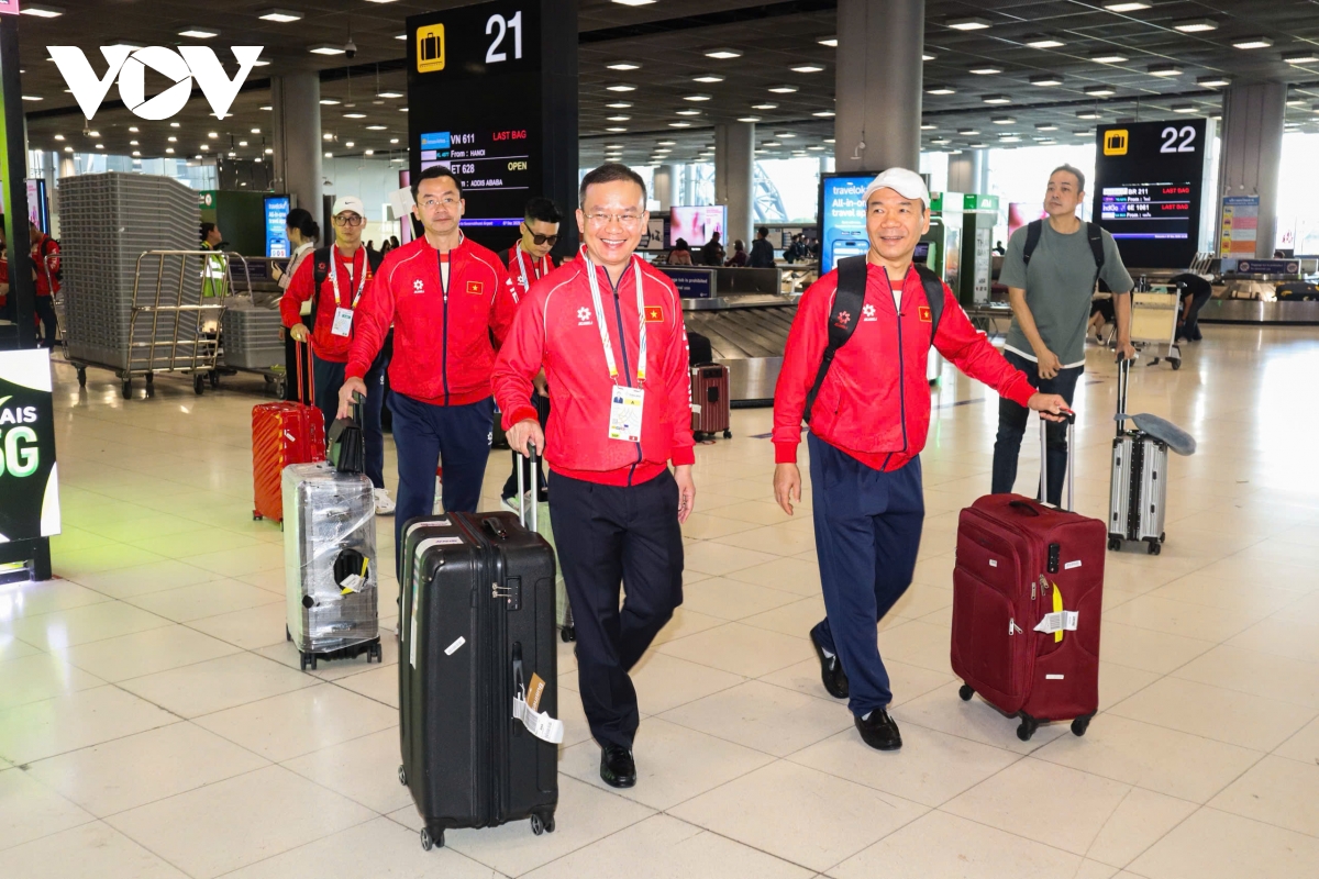 Trưa 7/12, sau hơn hai giờ bay từ Hà Nội, Đoàn Thể thao Việt Nam đã hạ cánh an toàn xuống sân bay quốc tế Suvarnabhumi (Bangkok, Thái Lan), chính thức mở đầu hành trình tham dự SEA Games 33 – sự kiện thể thao lớn nhất khu vực Đông Nam Á năm 2025.