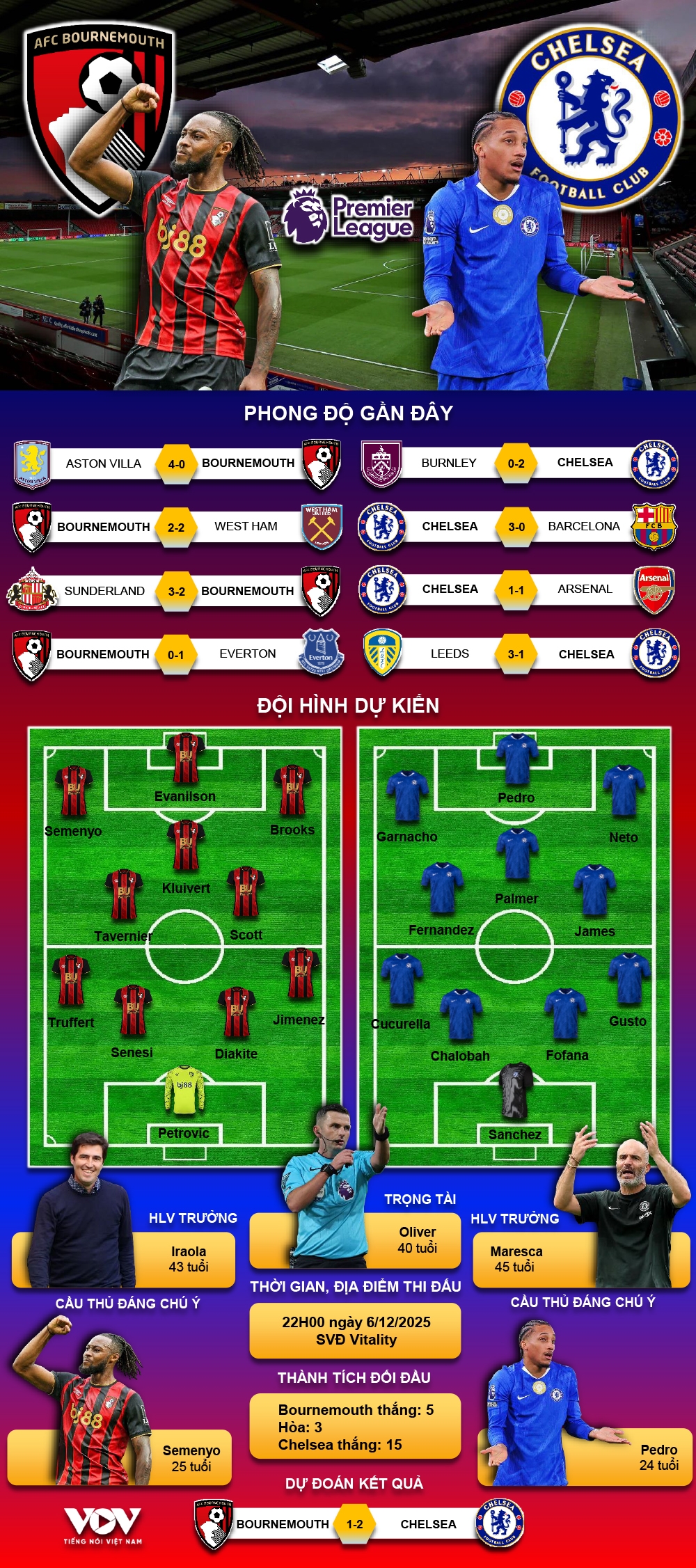 Lịch thi đấu vòng 15 Ngoại hạng Anh 2025/2026: MU dễ thở, Arsenal gặp khó VOV.VN - Lịch thi đấu vòng 15 Ngoại hạng Anh 2025/2026, MU có chuyến làm khách trên sân của Wolves, trong khi Arsenal chạm trán Aston Villa.