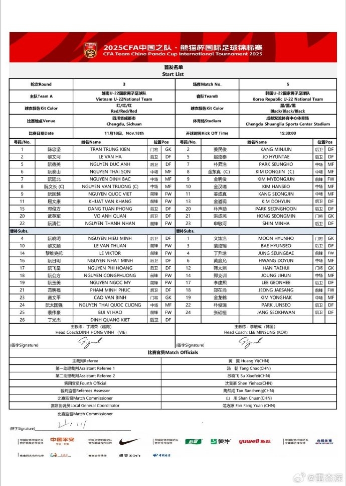 Xin chào các độc giả của VOV.VN, hôm nay chúng ta sẽ đến với buổi tường thuật trực tiếp trận đấu bóng đá U22 Hàn Quốc vs U22 Việt Nam trong khuôn khổ giải giao hữu CFA Team China – Panda Cup 2025, diễn ra tại Thành Đô, tỉnh Tứ Xuyên (Trung Quốc).