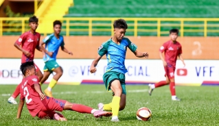 Tại bảng B, cuộc đối đầu giữa Thể Công Viettel I và Cần Thơ diễn ra hấp dẫn khi đội bóng trẻ áo lính thể hiện sự vượt trội, kiểm soát thế trận và tạo ra sức ép liên tục. Phút 20, Thành Long ghi bàn mở tỷ số 1-0 sau một pha phối hợp tấn công sắc nét. Trước khi hiệp 1 khép lại, Đình Dũng nhân đôi cách biệt ở phút 44 bằng cú đánh đầu từ tình huống đá phạt.