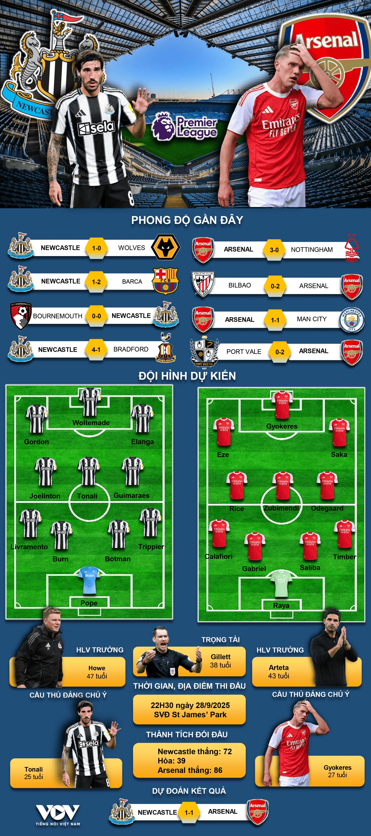 Làm khách của Newcastle, Arsenal chủ động chơi tấn công sau tiếng còi khai cuộc và tạo ra một số tình huống nguy hiểm. Tuy nhiên, Newcastle dù tấn công ít nhưng lại có bàn thắng mở tỉ số nhờ công của Woltemade với tình huống bật cao đánh đầu ở phút 34.