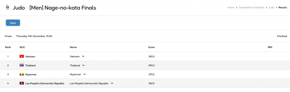 MÔN JUDO: Hai vận động viên Trần Quốc Cường và Phan Minh Hạnh đã xuất sắc giành tấm HCV thứ 12 cho Đoàn Thể thao Việt Nam sau khi thắng ở chung kết nội dung Nage no Kata.