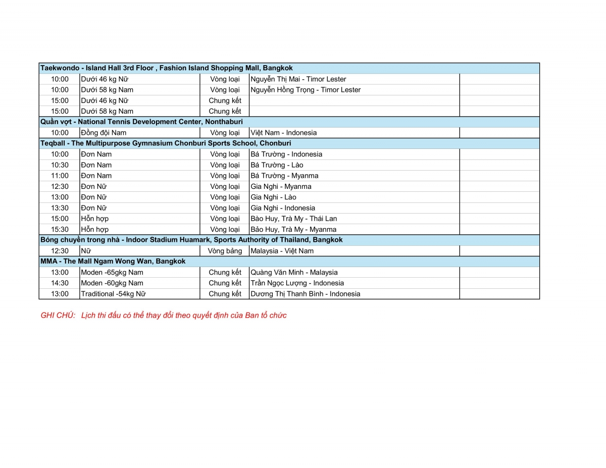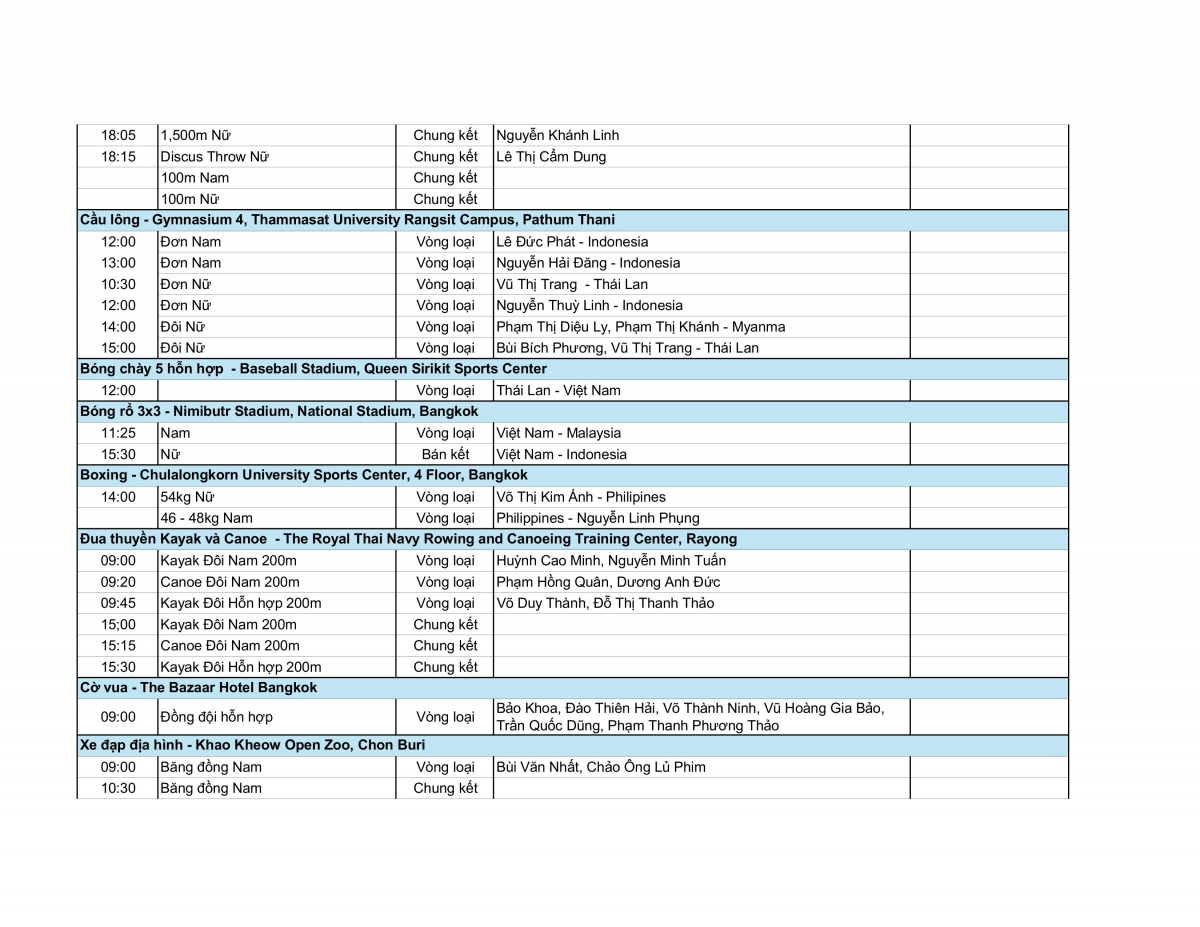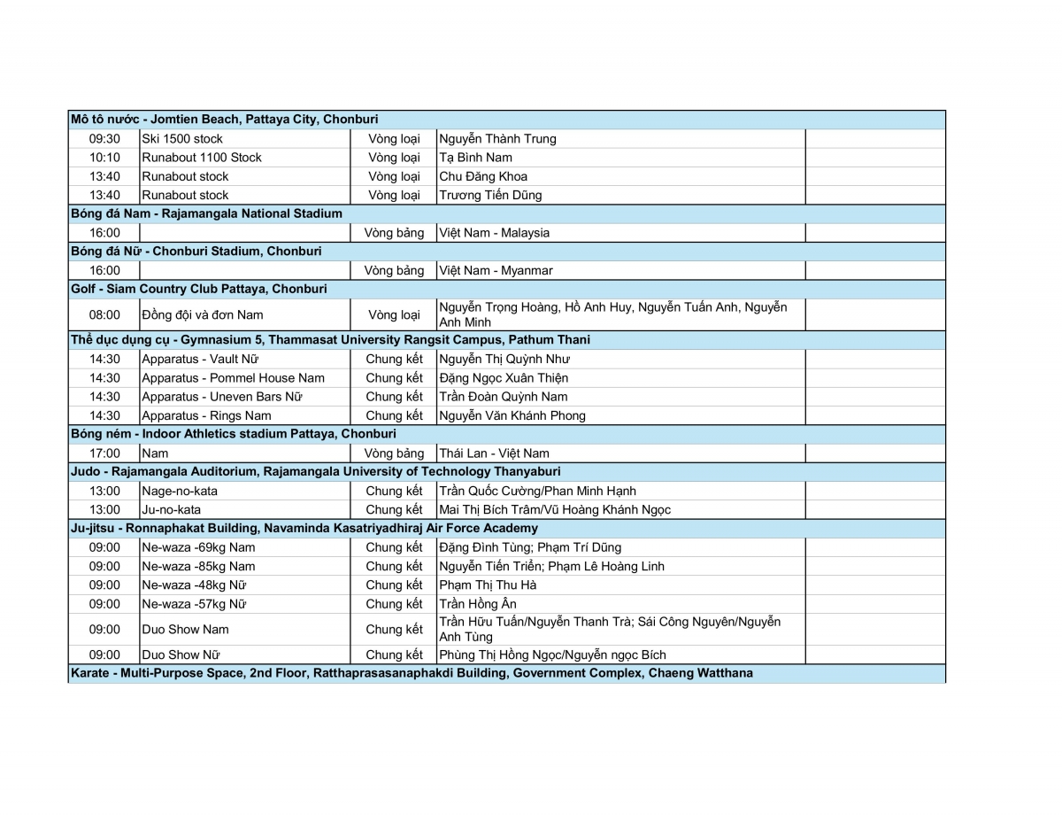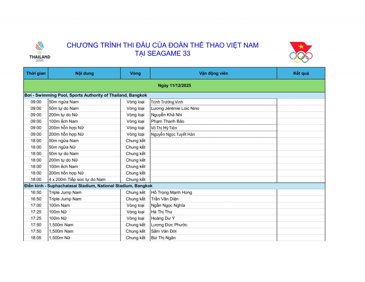 Lịch thi đấu SEA Games 33 của đoàn thể thao Việt Nam hôm nay 11/12, các VĐV nước nhà sẽ thi đấu ở rất nhiều môn với mục tiêu giành thêm nhiều HCV.