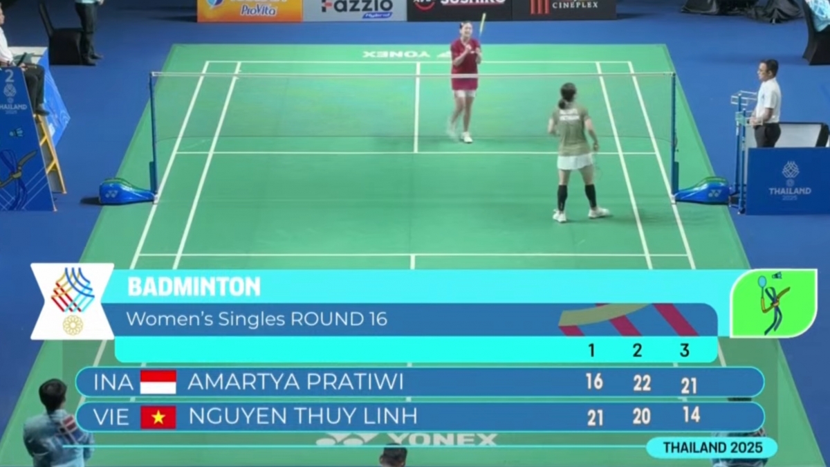 MÔN CẦU LÔNG: Nguyễn Thùy Linh thua ngược 1-2 trước Amartya Pratiwi với điểm số các set là 21-16, 20-22 và 14-21.