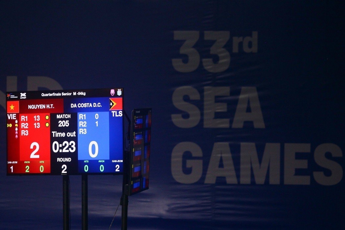 MÔN TAEKWONDO: Nguyễn Hồng Trọng vào bán kết taekwondo dưới 54kg nam sau khi đánh bại đối thủ đến từ Timor Leste.