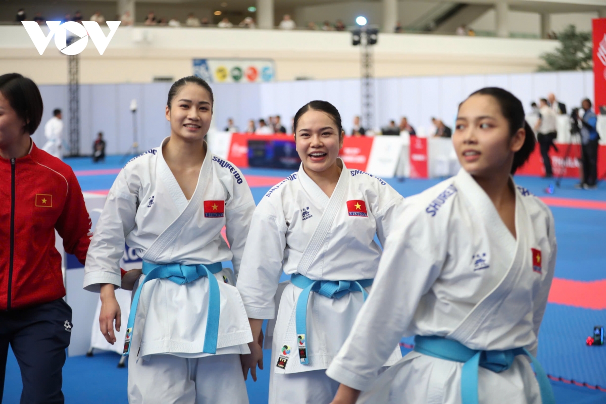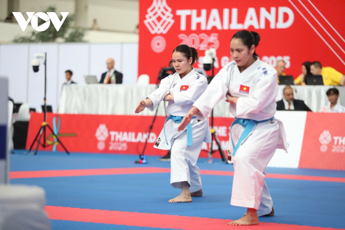 MÔN KARATE: Đội kata đồng đội nữ Việt Nam thắng Indonesia để vào chung kết. Bốn vận động viên gồm Nguyễn Thị Phương, Nguyễn Ngọc Trâm, Bùi Ngọc Nhi và Hoàng Thị Thu Uyên. Trong khi đó, Đội kata đồng đội nam thua và tranh HCĐ chiều nay 11/12.
