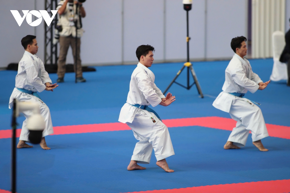 Mở đầu ngày thi đấu, đội kata đồng đội nữ Karate gồm Nguyễn Thị Phương, Nguyễn Ngọc Trâm, Bùi Ngọc Nhi và Hoàng Thị Thu Uyên vượt qua chủ nhà Thái Lan, mang về tấm HCV đầu tiên. Tại Taekwondo, võ sĩ Nguyễn Hồng Trọng thi đấu áp đảo và giành HCV hạng -54kg. Ju-jitsu góp thêm một HCV nhờ màn trình diễn tốt của Đặng Đình Tùng ở nội dung Ne-waza -69kg nam.