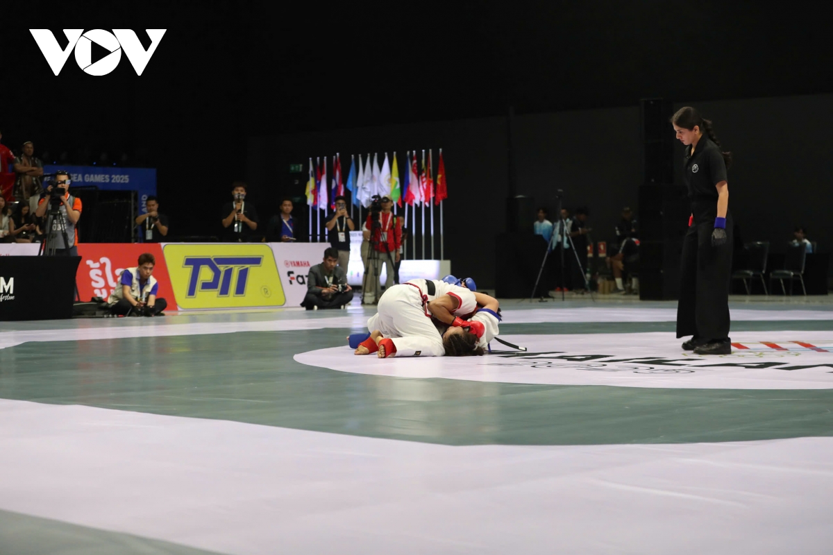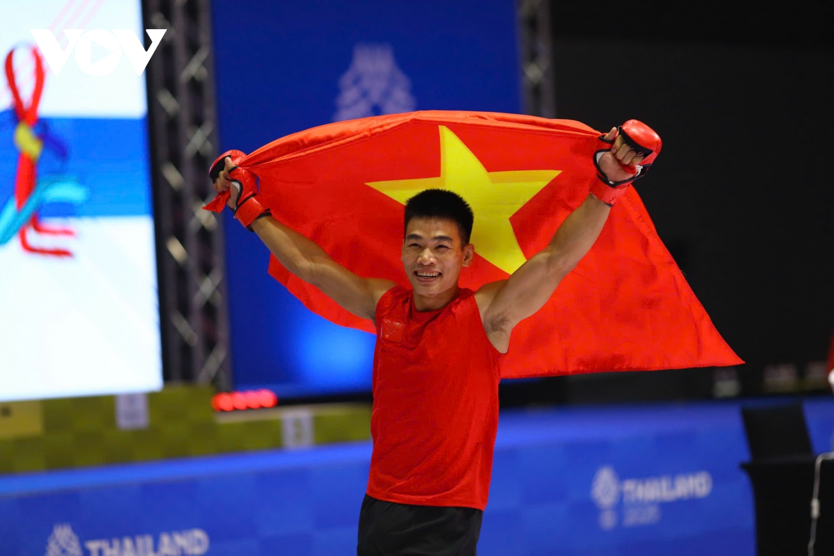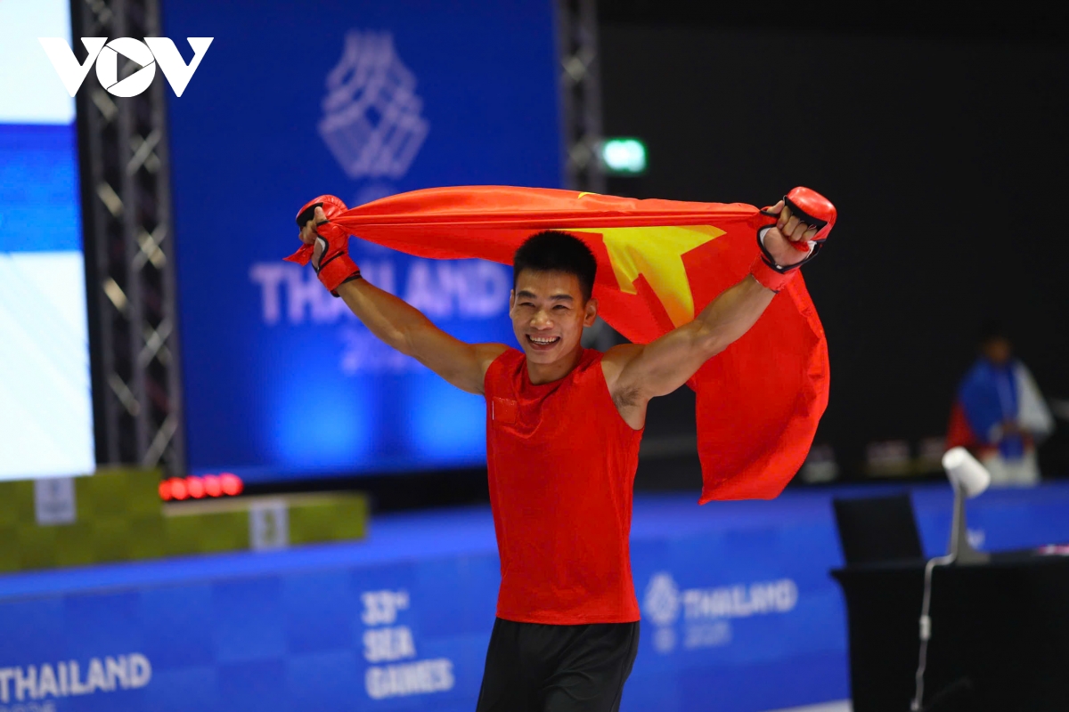 MMA: Quàng Văn Minh giành HCV đối kháng -65kg Nam MMA hiện đại. Đại diện Việt Nam đã thi đấu áp đảo đối thủ đến từ Malaysia để giành được tấm HCV thứ 6 cho Đoàn Thể thao Việt Nam. Tuy nhiên, môn MMA tại SEA Games 33 chỉ mang tính biểu diễn, nên chiếc HCV của Văn Minh không được tính vào bảng tổng sắp, tương tự là HCB của Dương Thị Thanh Bình trước đó.