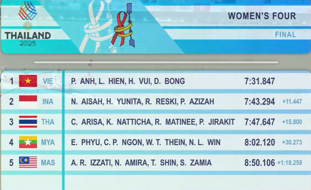 HCĐ (12): Nguyễn Thị Vân Anh, Phạm Thị Bích Ngọc (rowing), Nguyễn Minh Triết, Vũ Văn Kiên, Bùi Đình Quyết, Lê Thị Vân Anh, Lê Văn Phước (Pencak Silat), Phạm Lê Xuân Lộc (xe đạp), Hoàng Khánh Mai (Muay), Trần Xuân Dũng (cử tạ), Nguyễn Phương Kim, Phạm Thị Thu Hoài (đấu kiếm), Nguyễn Doãn Long (Muay).