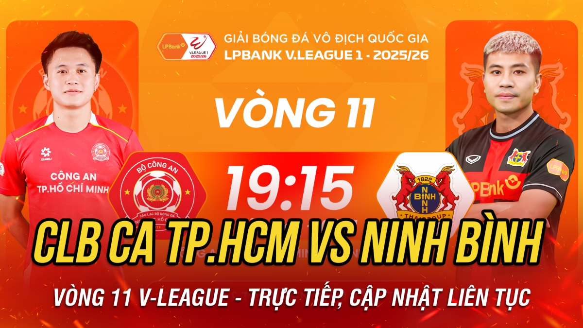 Xin chào các độc giả của VOV.VN, hôm nay chúng ta sẽ đến với buổi tường thuật trực tiếp trận đấu bóng đá CLB CA TP.HCM vs Ninh Bình vòng 11 V-League 2025/2026.