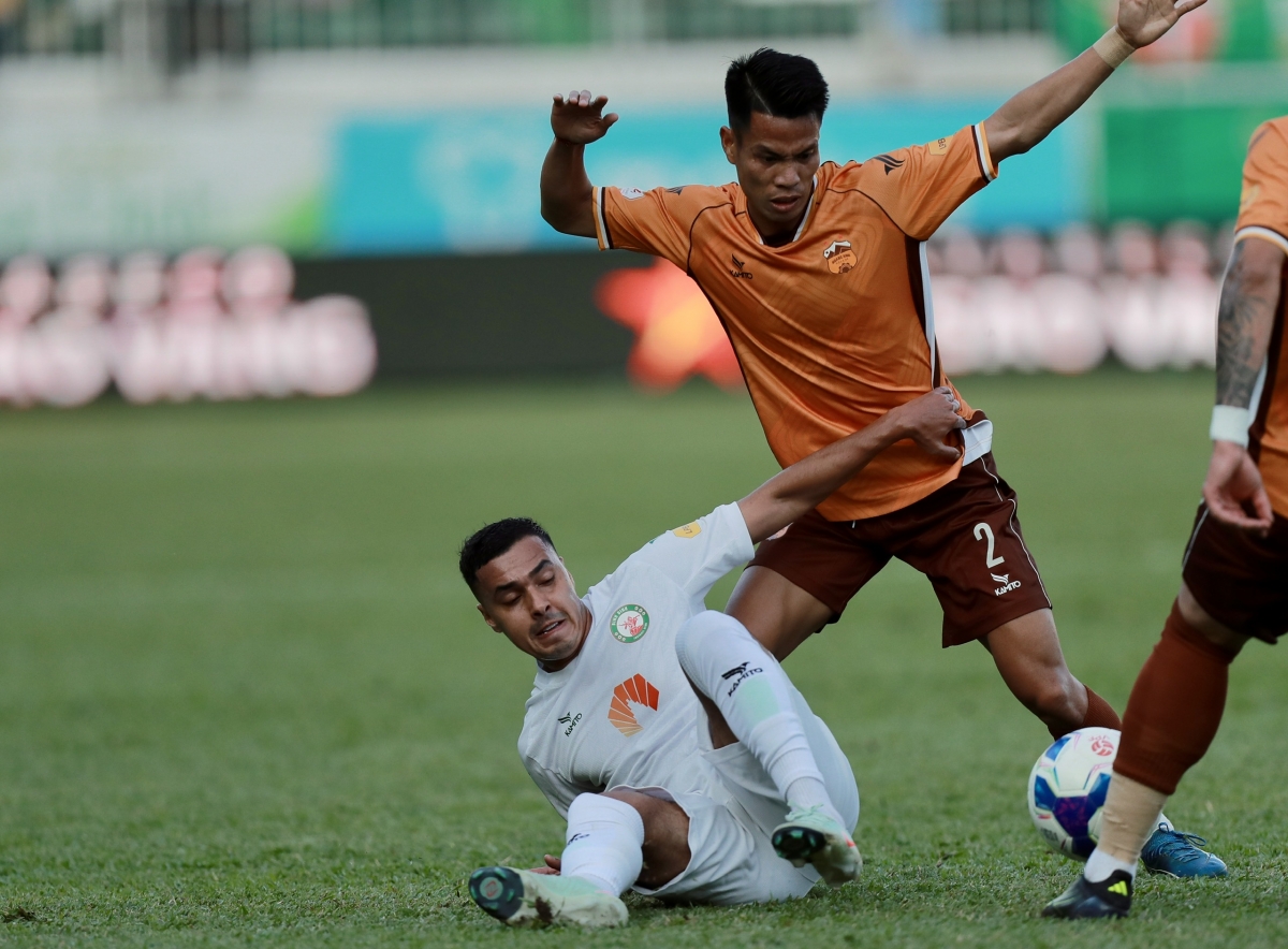 8': KHÔNG ĐƯỢC!!! Marciel chuyền bóng cho Minh Vương trước vòng cấm địa Bình Định, nhưng hậu vệ đội khách dễ dàng truy cản thành công. Hai đội đang thi đấu với nhịp độ chậm, thế trận chặt chẽ.