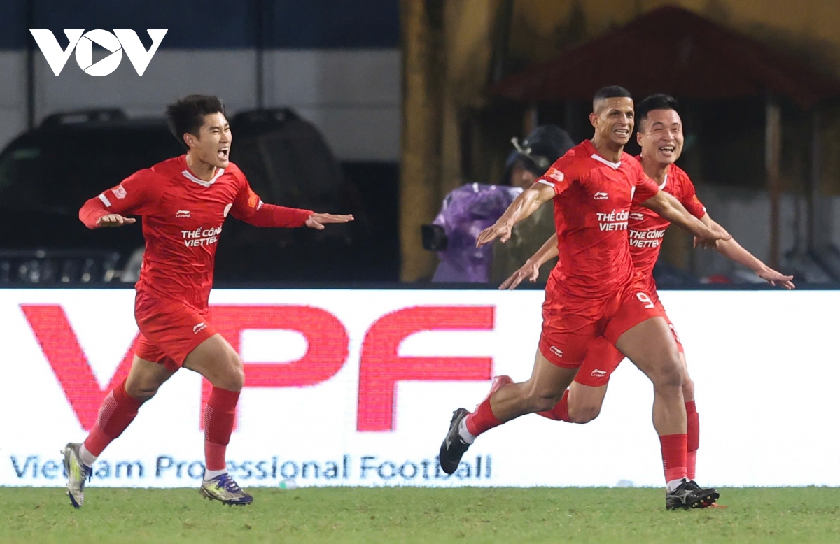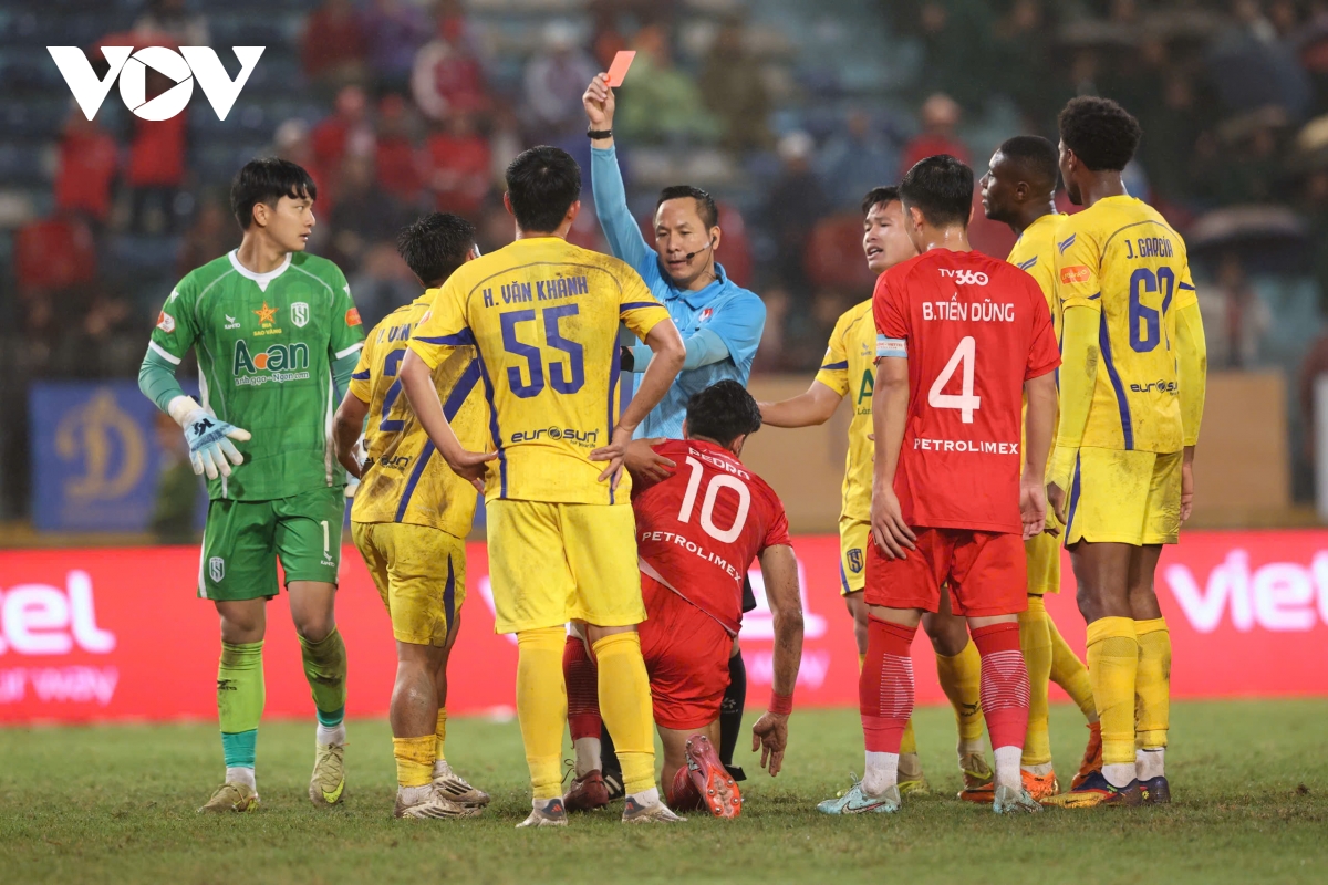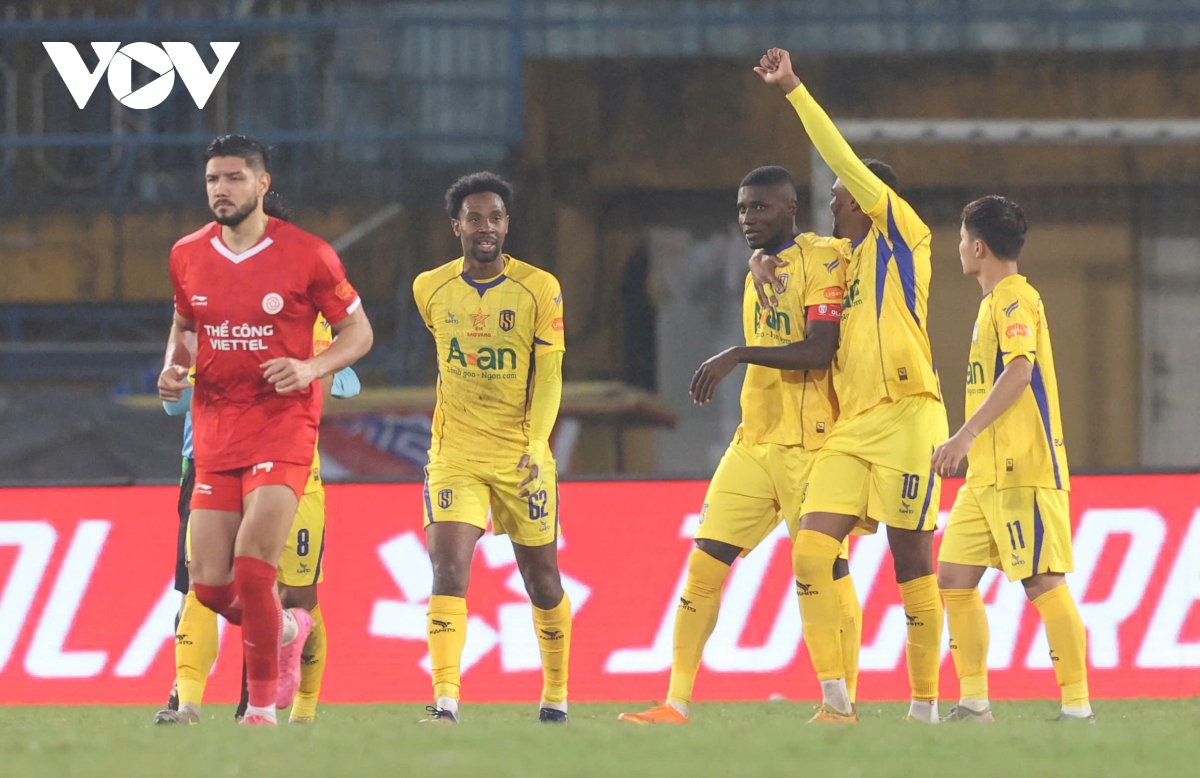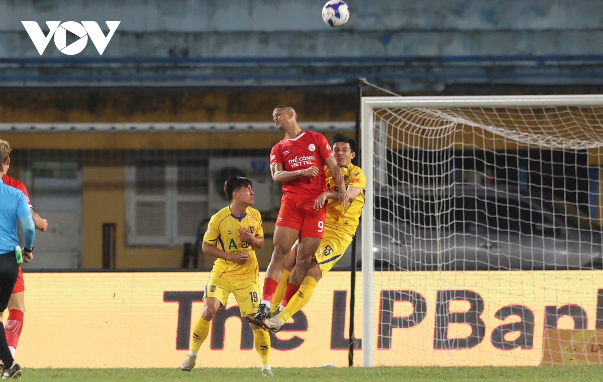 VOV.VN - Kết quả vòng 13 V-League tối 8/2: 10 người SLNA thắng 4-1 trước Thể Công Viettel trên sân Hàng Đẫy