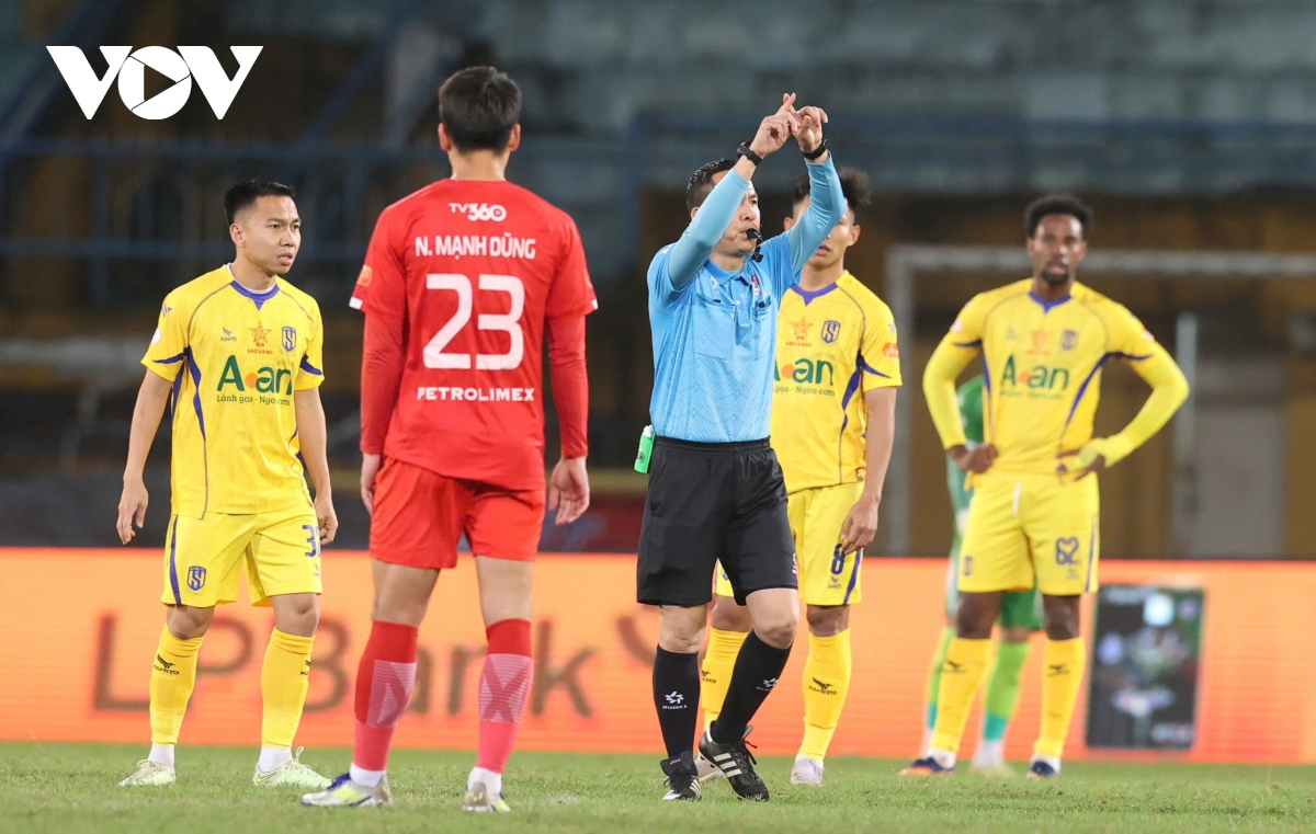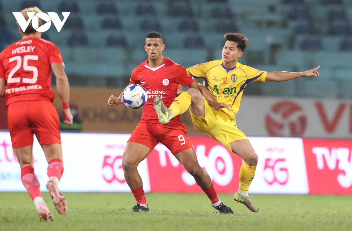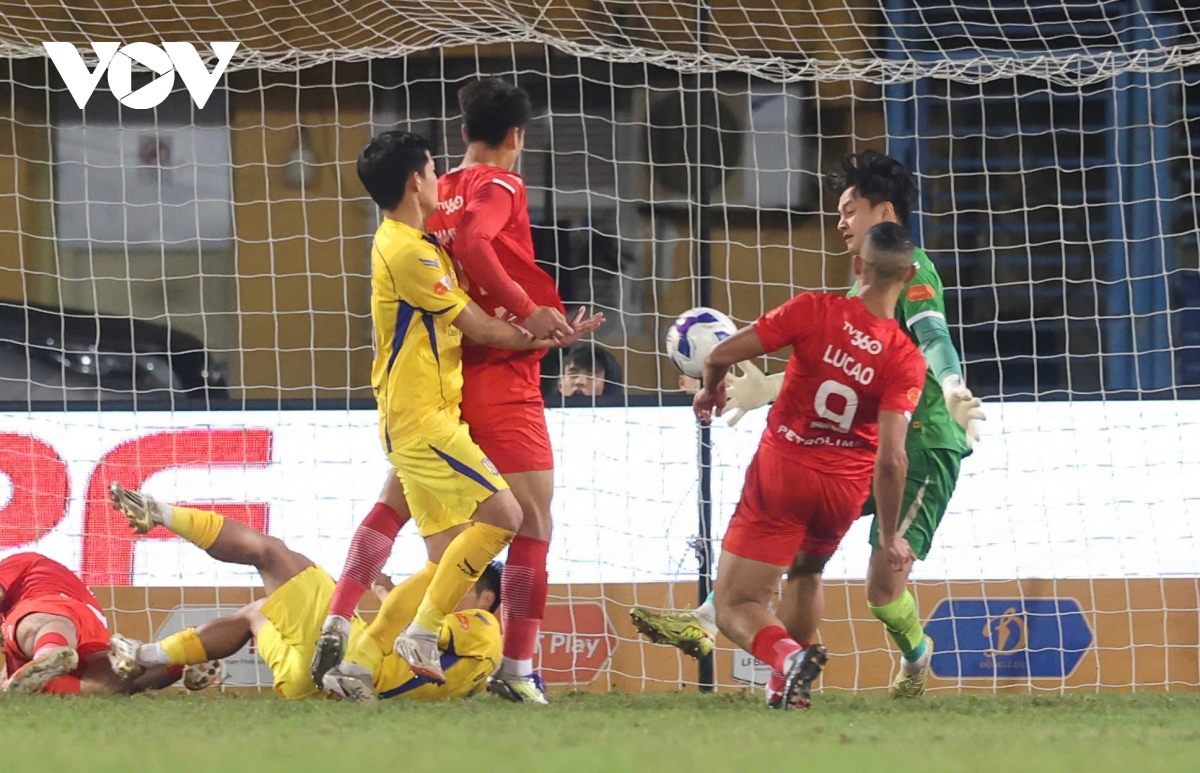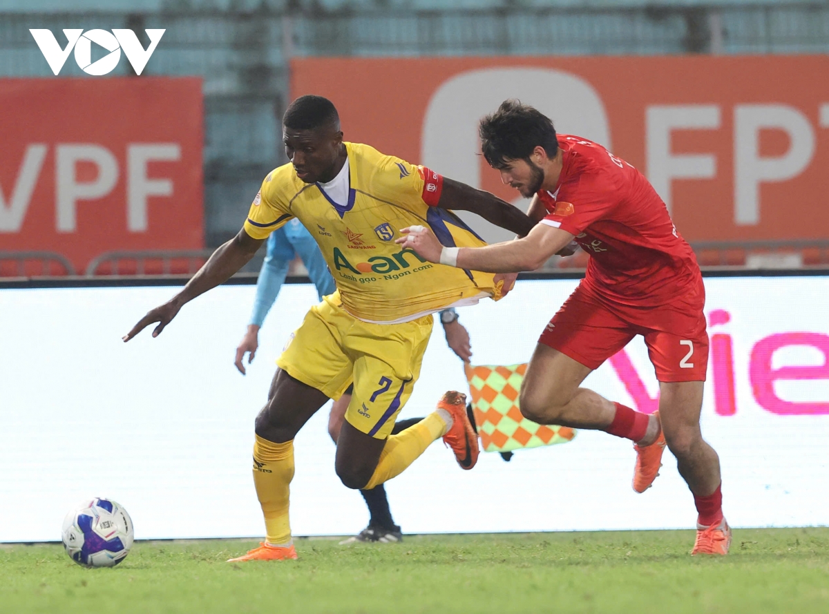 VOV.VN - Kết quả vòng 13 V-League tối 8/2: 10 người SLNA thắng 4-1 trước Thể Công Viettel trên sân Hàng Đẫy