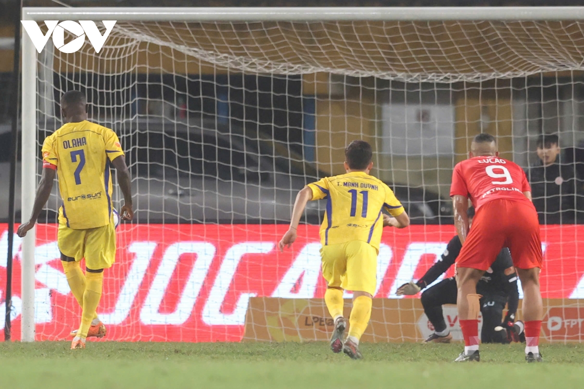 Trên chấm 11m, Olaha đã tung ra cú sút chân trái vào góc cao bên trái khung thành Thể Công Viettel, đánh bại thủ môn Văn Việt, nâng tỷ số lên 4-1 cho SLNA ở phút 90'+1 !!!
