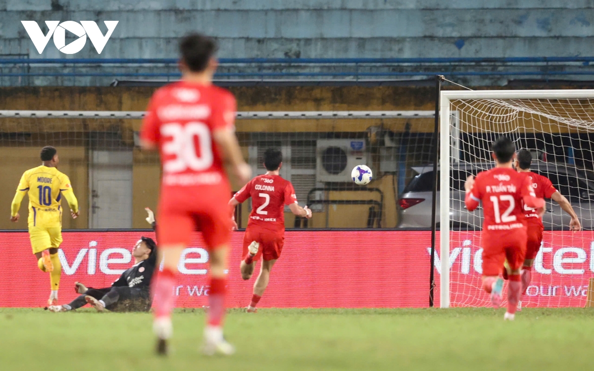 Ít phút sau đó, Viết Tú treo bóng từ chấm đá phạt góc bên cánh phải theo hướng tấn công của Thể Công Viettel để Paulo bật cao đánh đầu tung lưới thủ môn Cao Văn Bình của SLNA, quân bình tỷ số 1-1 cho đội chủ nhà. Tuy nhiên, sau khi tham khảo VAR, trọng tài đã không công nhận bàn thắng của đội chủ nhà vì cho rằng Kyle Colonna đã phạm lỗi với thủ môn Văn Bình trước đó.