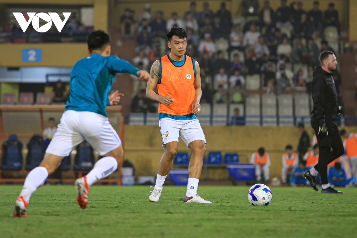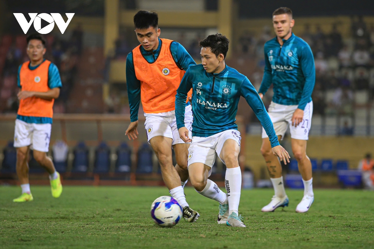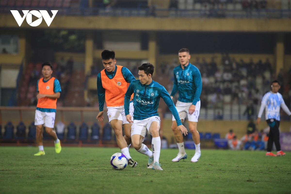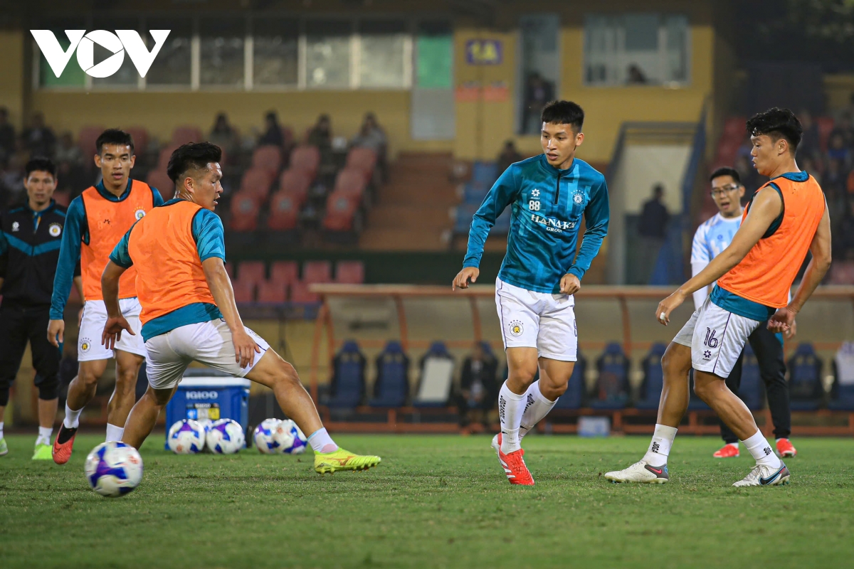 Hà Nội FC khởi động trước trận (Ảnh: Hoài Thương).