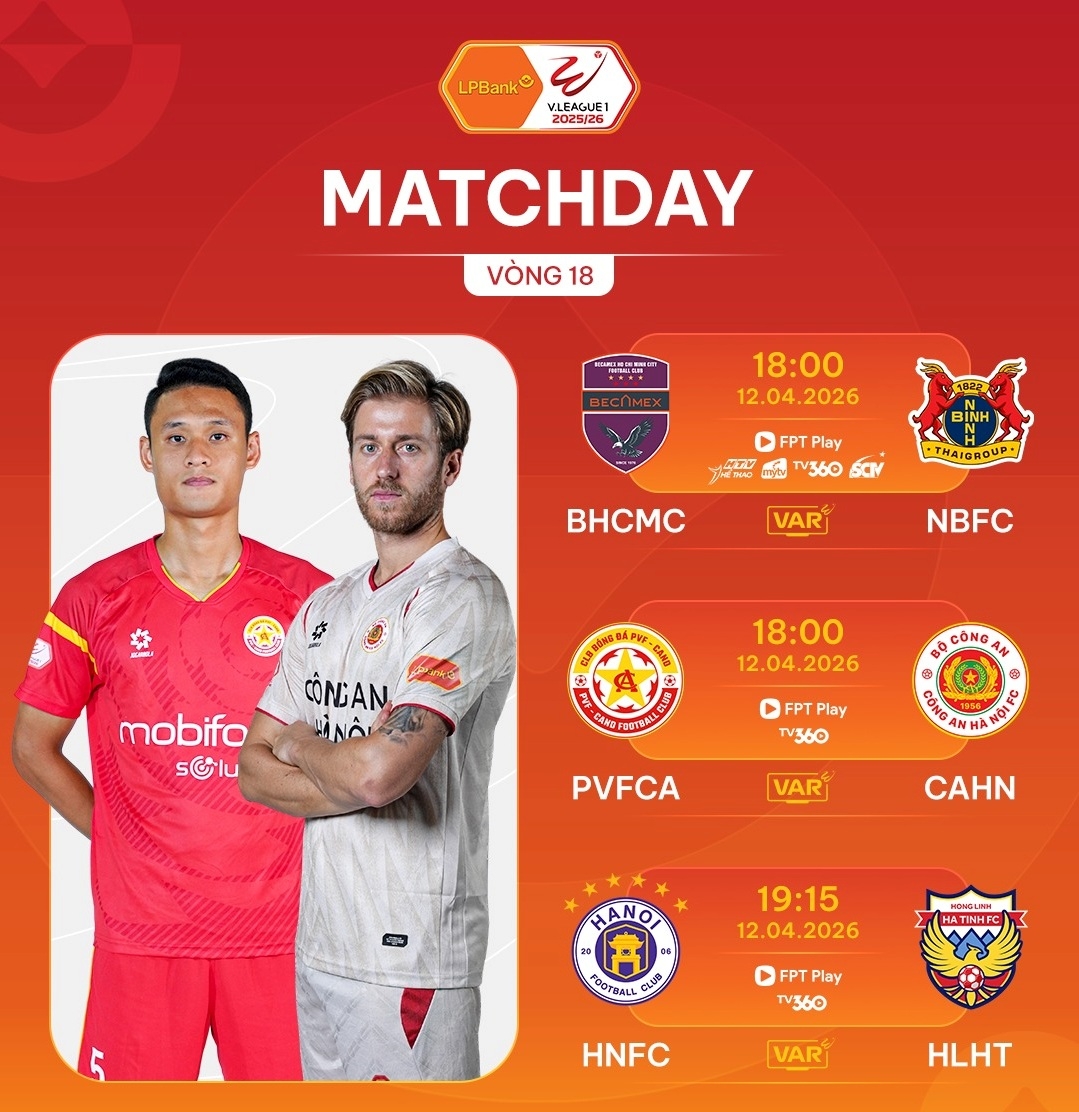 Trực tiếp PVF CAND vs CAHN trong khuôn khổ vòng 18 V-League 2025/2026 diễn ra vào lúc 18h ngày 12/4.