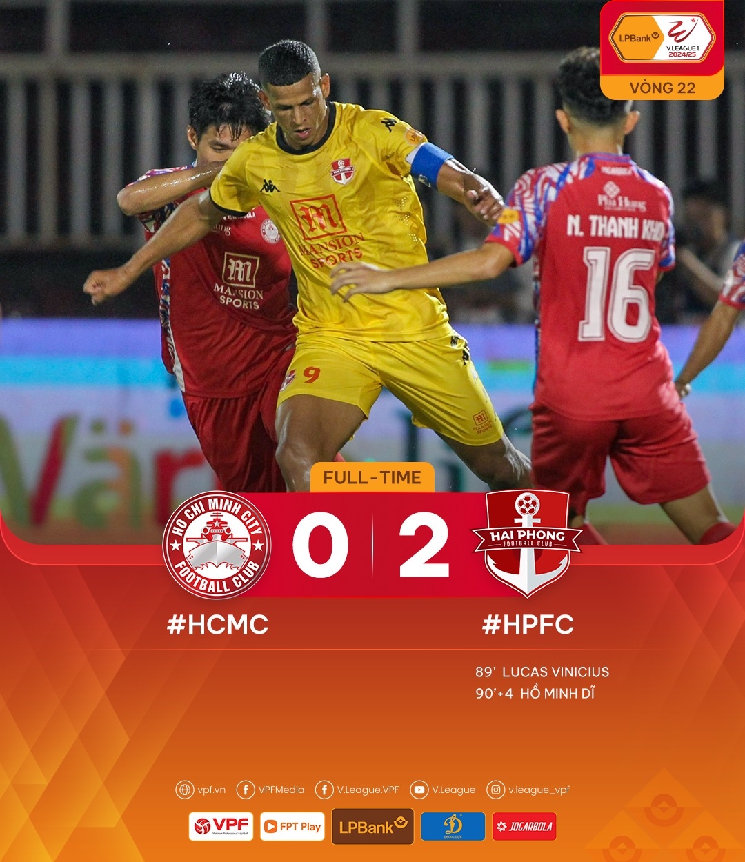 Ở trận đấu cùng giờ trên sân Thống Nhất, Hải Phòng giành chiến thắng 2-0 trước CLB TP.HCM nhờ các pha lập công của Lucao và Minh Dĩ. Chiến thắng này giúp đội bóng đất Cảng có 28 điểm, đứng thứ 7 trên bảng xếp hạng.