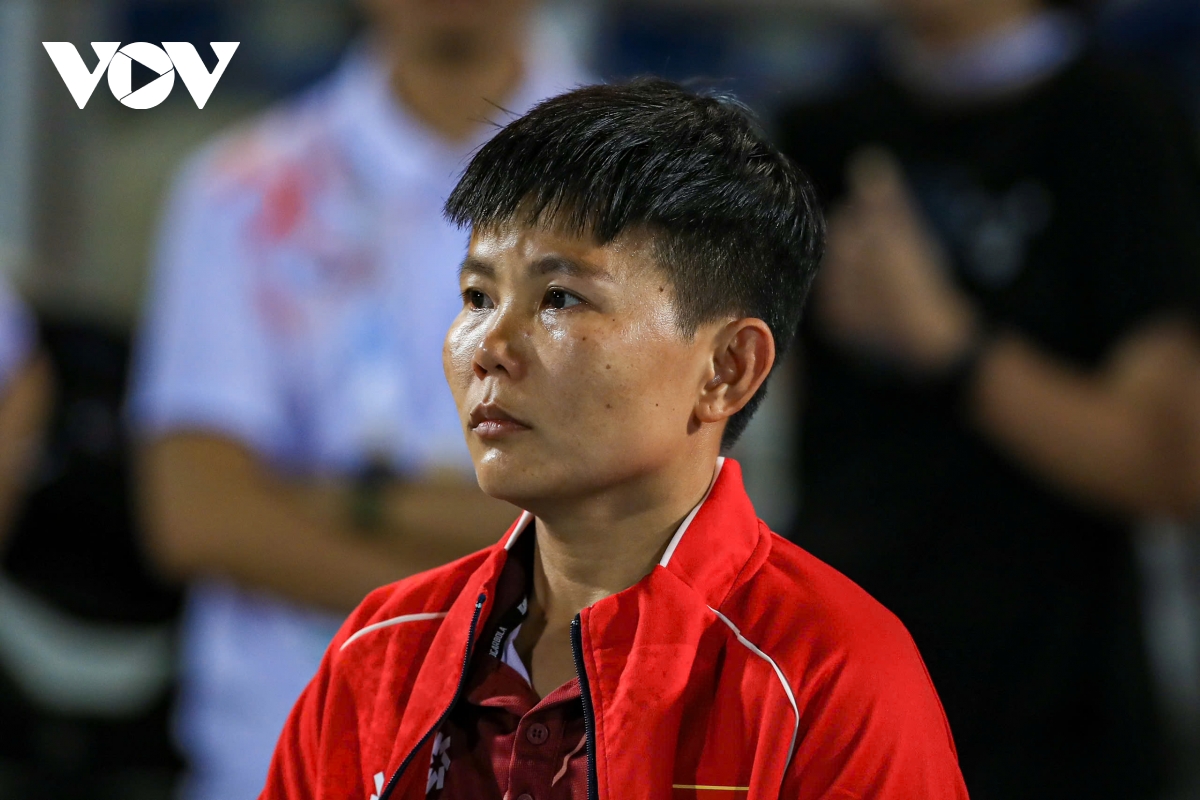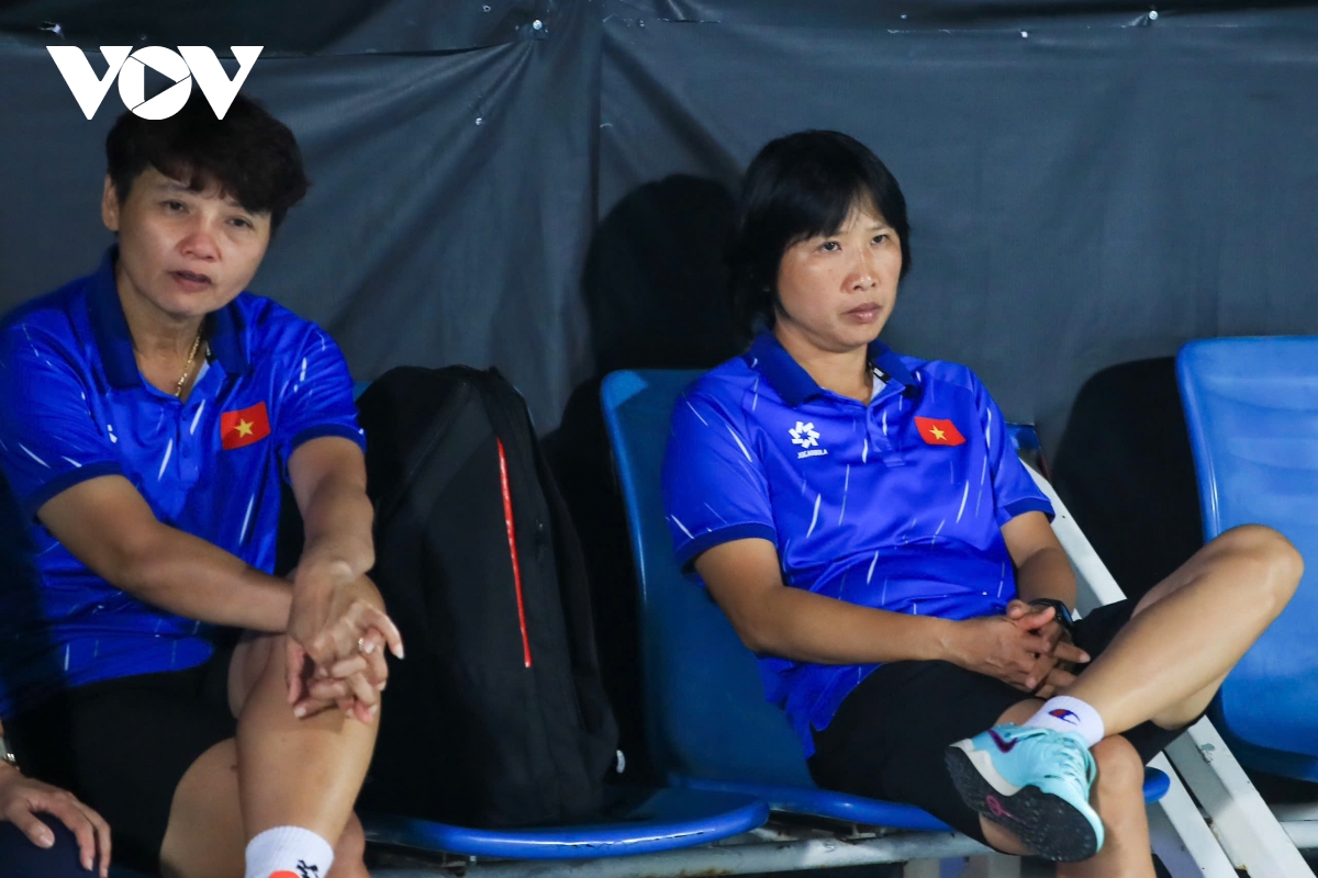 Khuôn mặt thất thần của HLV Mai Đức Chung khi ĐT nữ Việt Nam nhận thất bại đáng tiếc.