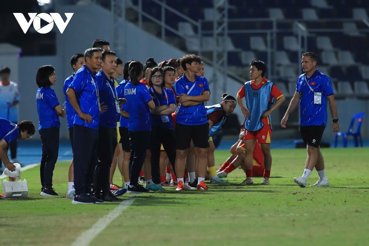 Ngay sau tình huống sút hỏng phạt đền cuối cùng của ĐT nữ Việt Nam, sự thất vọng ập đến với ban huấn luyện.