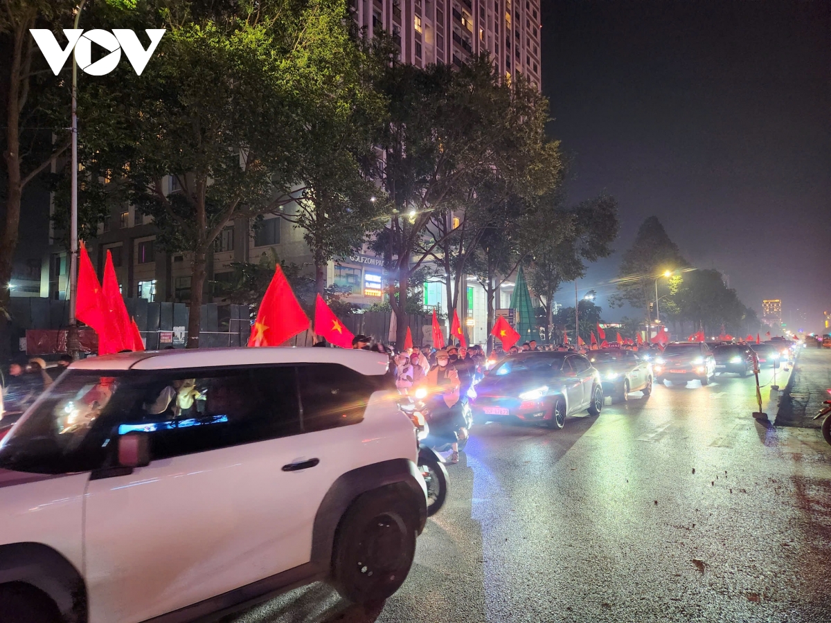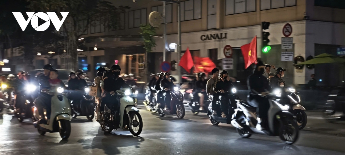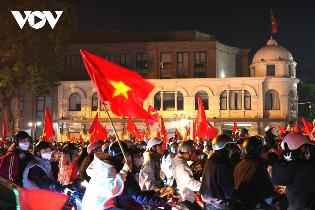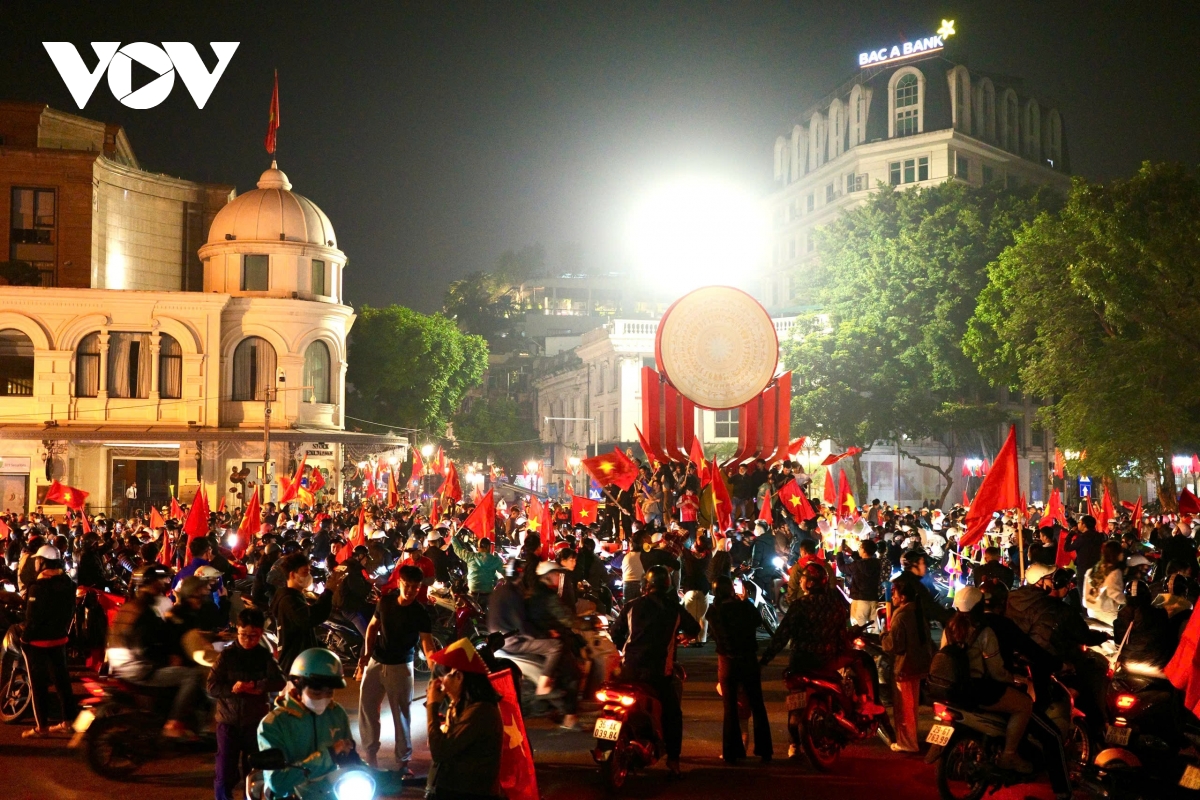 Theo phóng viên Hải Hà của Báo Điện tử Tiếng nói Việt Nam: Từ khu vực Hồ Gươm, Nhà hát Lớn đến các tuyến phố Tràng Tiền, Hàng Bài, Điện Biên Phủ…, không khí ăn mừng chiến thắng của đội tuyển U22 Việt Nam tại SEA Games 33 đang lan tỏa mạnh mẽ. Thành phố như vỡ òa trong sắc đỏ của cờ Tổ quốc, tiếng reo hò và những hồi còi xe kéo dài bất tận.