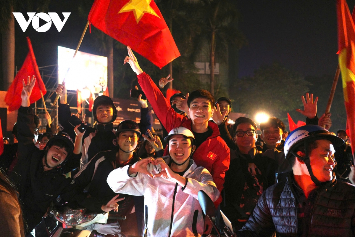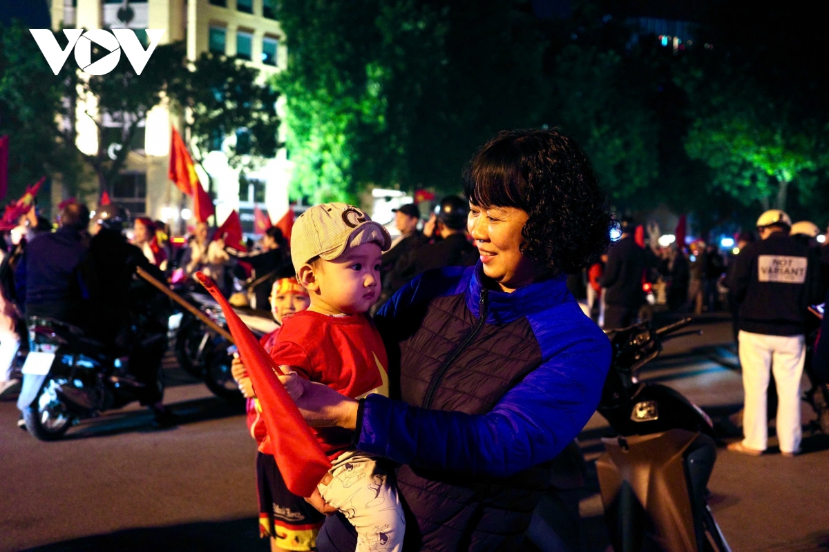 Hầu như mọi trục đường dẫn về trung tâm đều chật kín người dân xuống đường cổ vũ, ăn mừng. Có người diễu hành bằng xe máy, có nhóm tụ tập vỗ tay hát vang, có gia đình đưa cả trẻ nhỏ theo cùng để chia sẻ khoảnh khắc đáng nhớ. Mỗi người một cách thể hiện, nhưng tất cả đều chung một niềm vui vỡ òa. Thành phố như không ngủ. Không khí lễ hội nóng hơn bao giờ hết, lan tỏa niềm hạnh phúc, tự hào và tinh thần đoàn kết – thứ cảm xúc chỉ bóng đá Việt Nam mới có thể khơi dậy mạnh mẽ đến vậy.